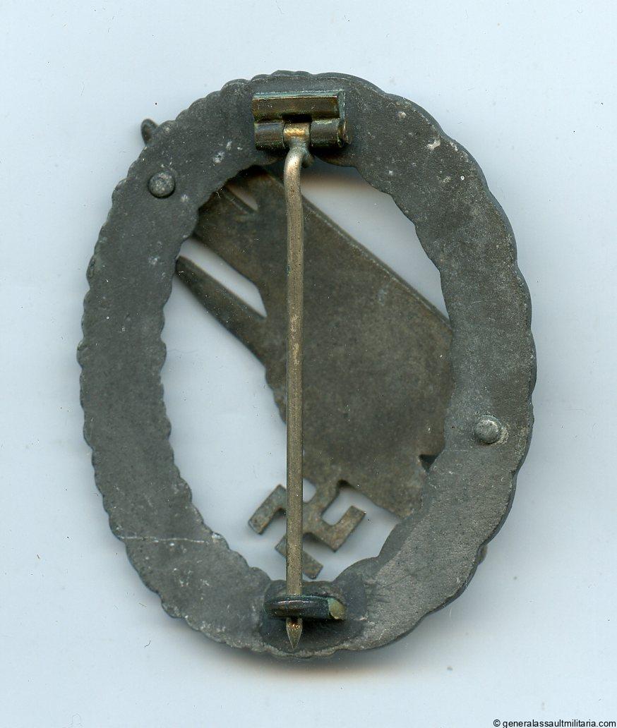 Luftwaffe paratrooper badge – Friedrich Linden, Lüdenscheid. Mid to late war all zinc ‘Fallschirmschützenabzeichen’ with FLL design and setup. Remains in good condition with some age and light wear showing, some fading on the gold eagle but retained the gold look quite well. Good looking paratrooper variant.