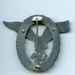 Luftwaffe pilots badge – Friedrich Linden, Lüdenscheid. Late war zinc pilots badge with FLL design and variant setup. Remains in unworn condition and has all the finish present in faded condition. More common but well preserved pilots badge.