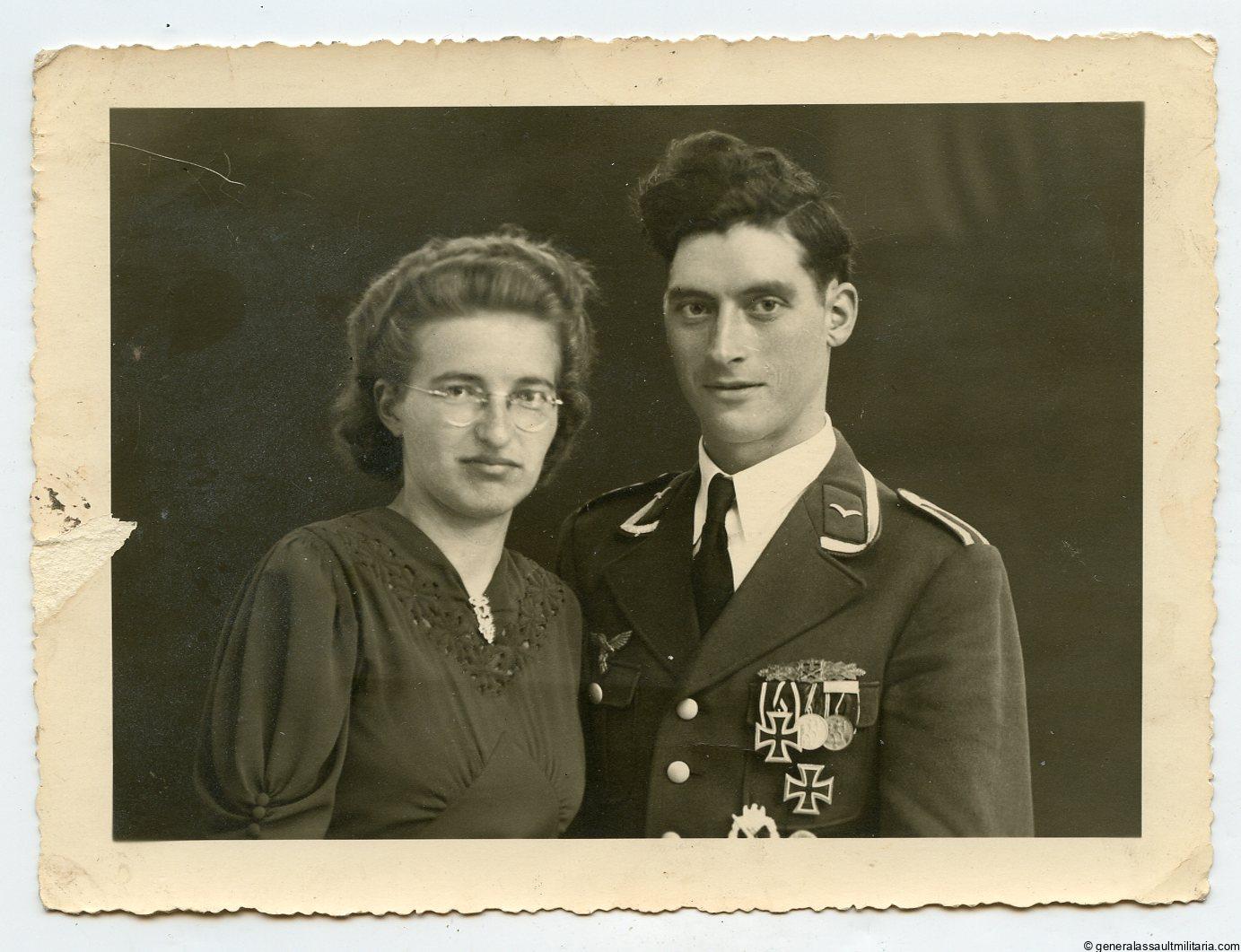 Luftwaffe Pionier portrait with close combat clasp in bronze, Medal bar, IAB, Ek1, WBS. Very interesting portrait of a well decorated Luftwaffe pioneer wearing both Anschluss medals indicating he was present form the start. Slightly larger than postcard size, produced on Agfa portrait paper and show some age to the corners and left side. Top shot with a very unique combination of awards for a Luftwaffe Pionier.