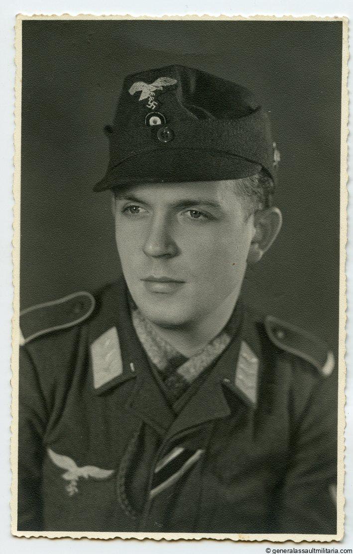 Luftwaffe portrait with cap insignia. Interesting photo of a Luftwaffe soldier with cap and signs of a metal emblem on the side. Postcard size, Agfa portrait paper, very sharp and excellent condition.