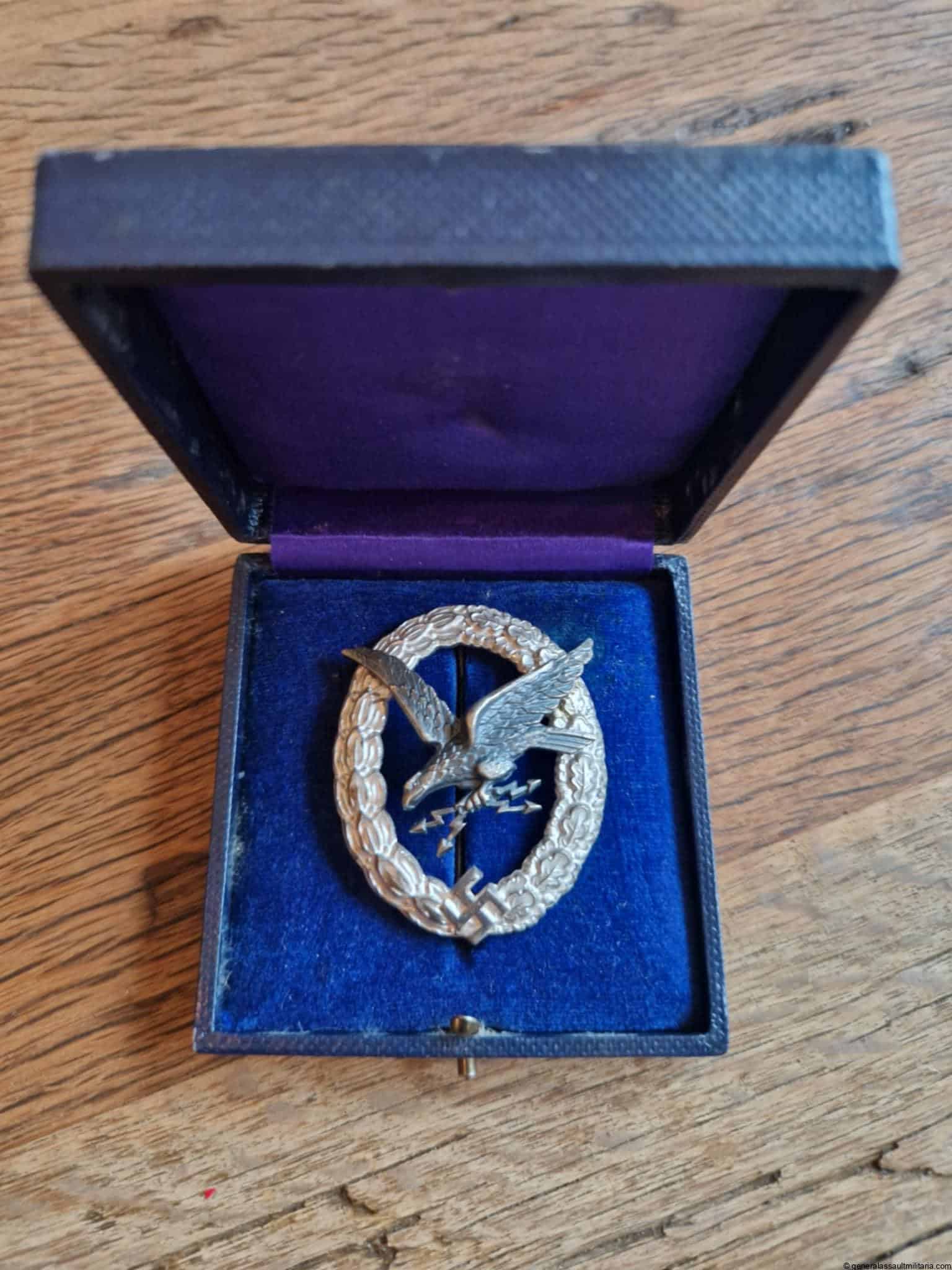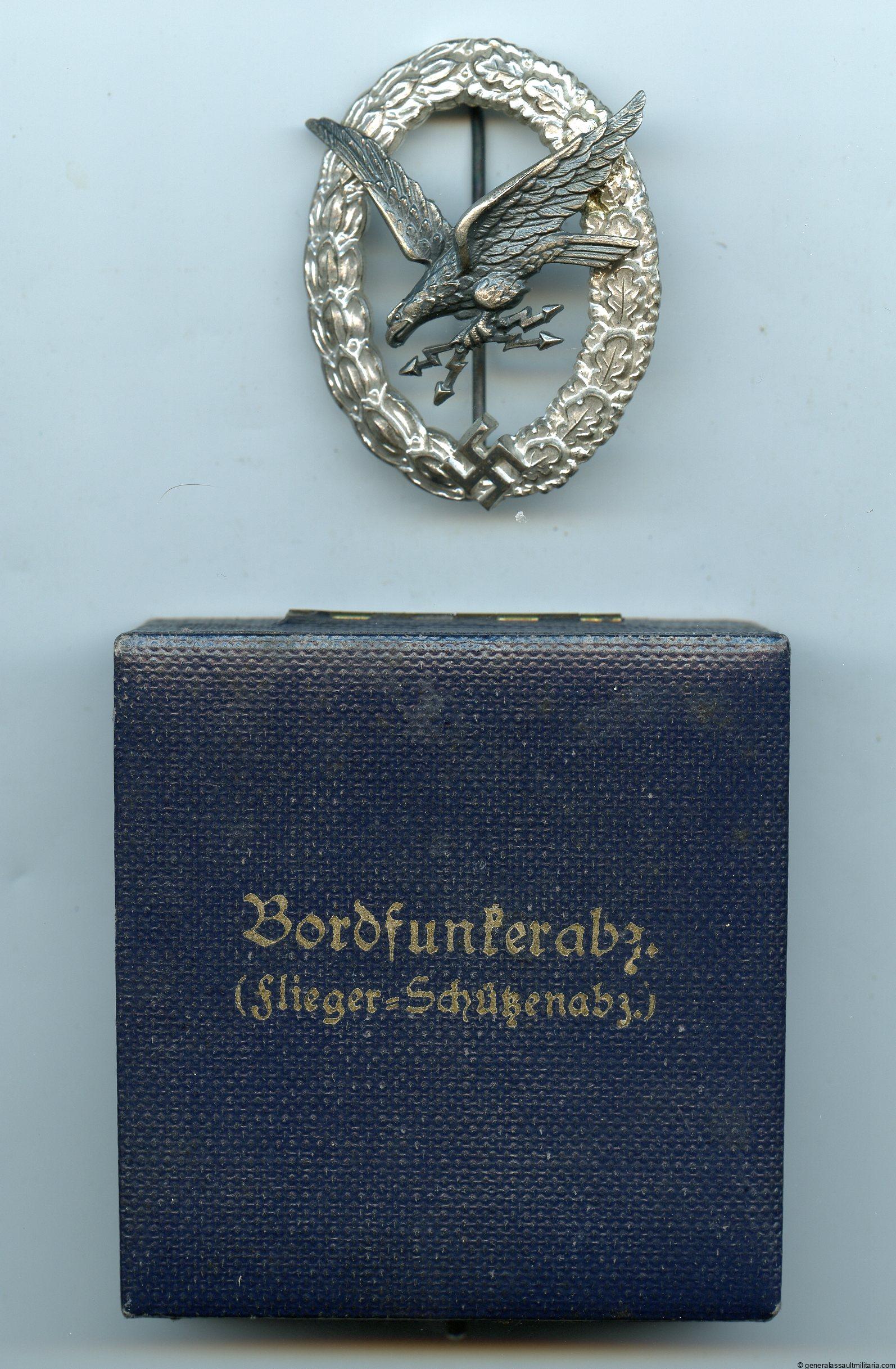 Luftwaffe radio operator air gunner badge cased – Assmann & Söhne, Lüdenscheid