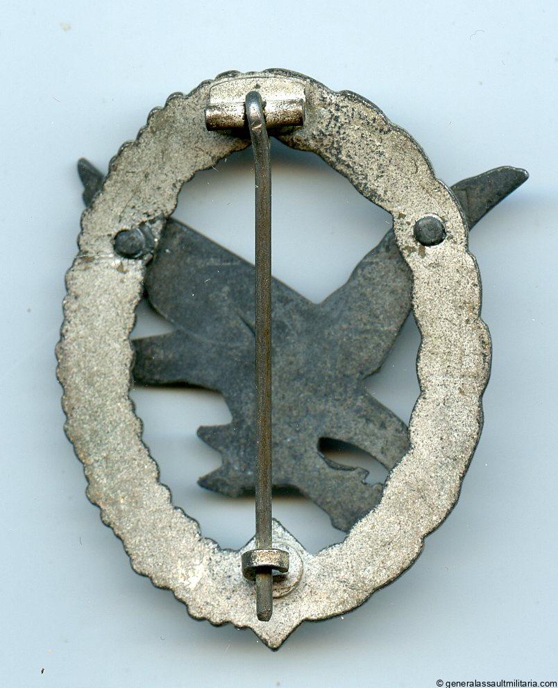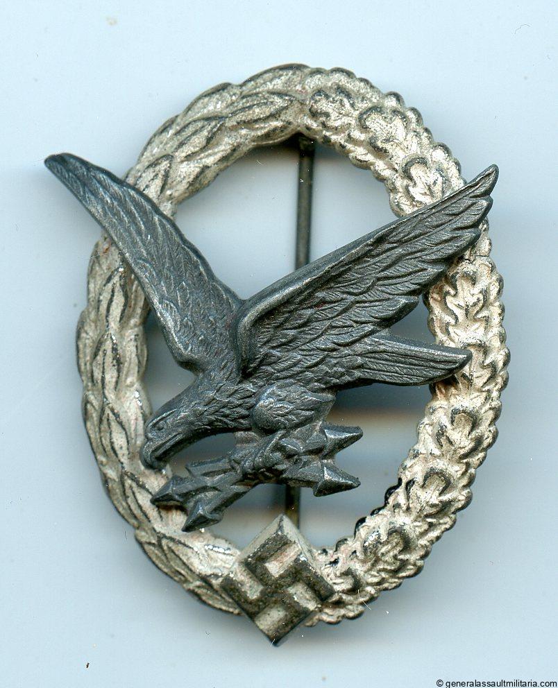 Luftwaffe Radio operator air gunner badge – Friedrich Linden, Lüdenscheid. late war two piece construction ‘Fliegerschützenabzeichen’ with FLL design and zinc rivets. Remains in mint condition with still fully finished wreath. Top example with all of the fragile finish intact.