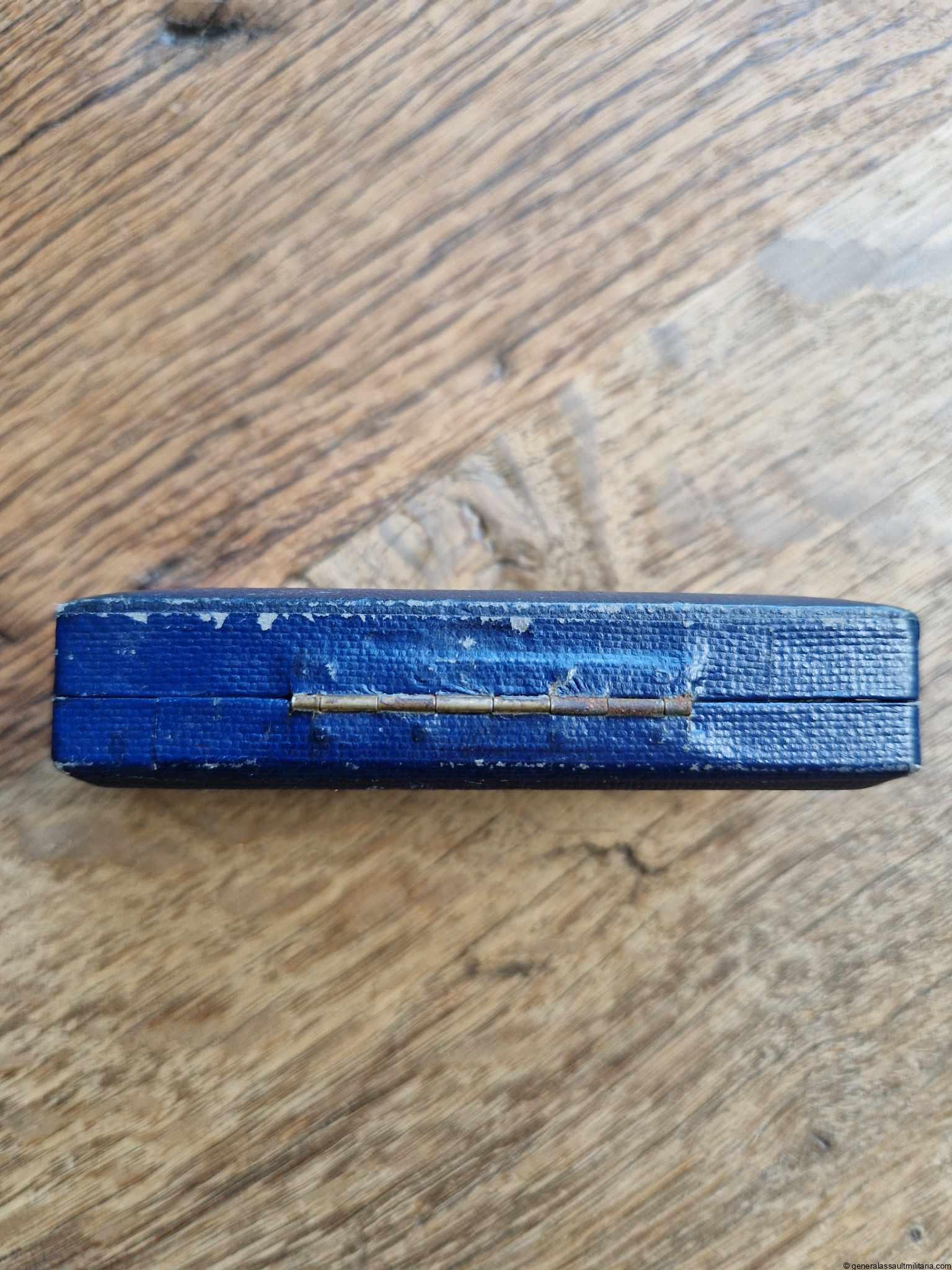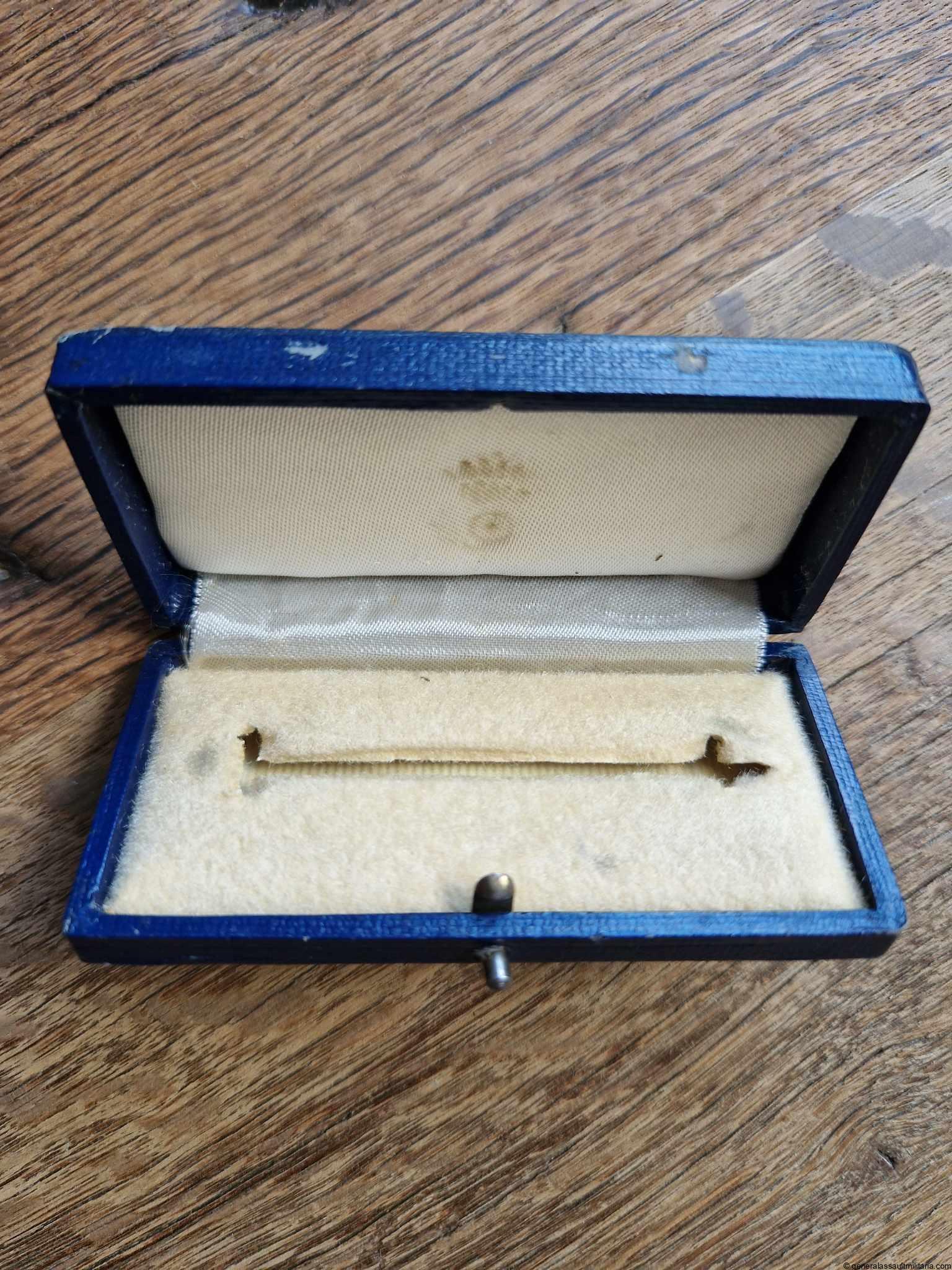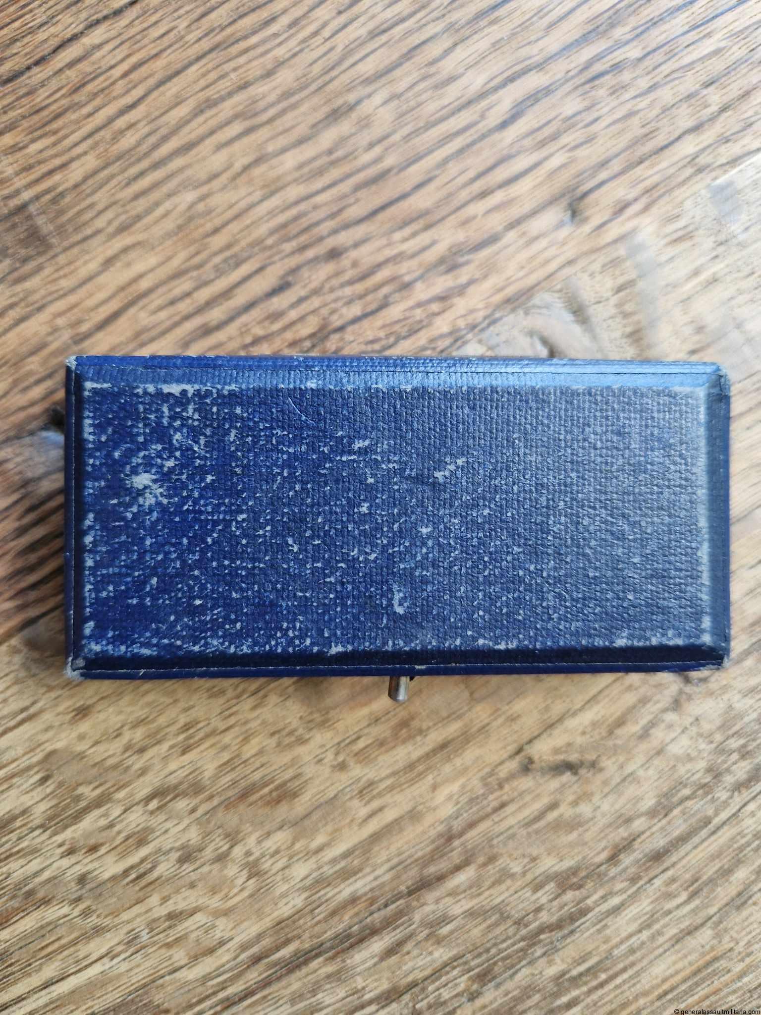 Luftwaffe recon clasp in bronze cased – IMME & Sohn, Berlin. Early war tombac clasp with bronze finish, riveted nickel silver eagle and very uncommon IMME maker mark on the back. Remains in unworn condition with all the bronze finish remaining on the ‘Frontflugspange’ and a typical bright looking IMME eagle. Comes with matching early to mid war case in that shows moderate wear to the outside. Top set with a rare marked clasp!