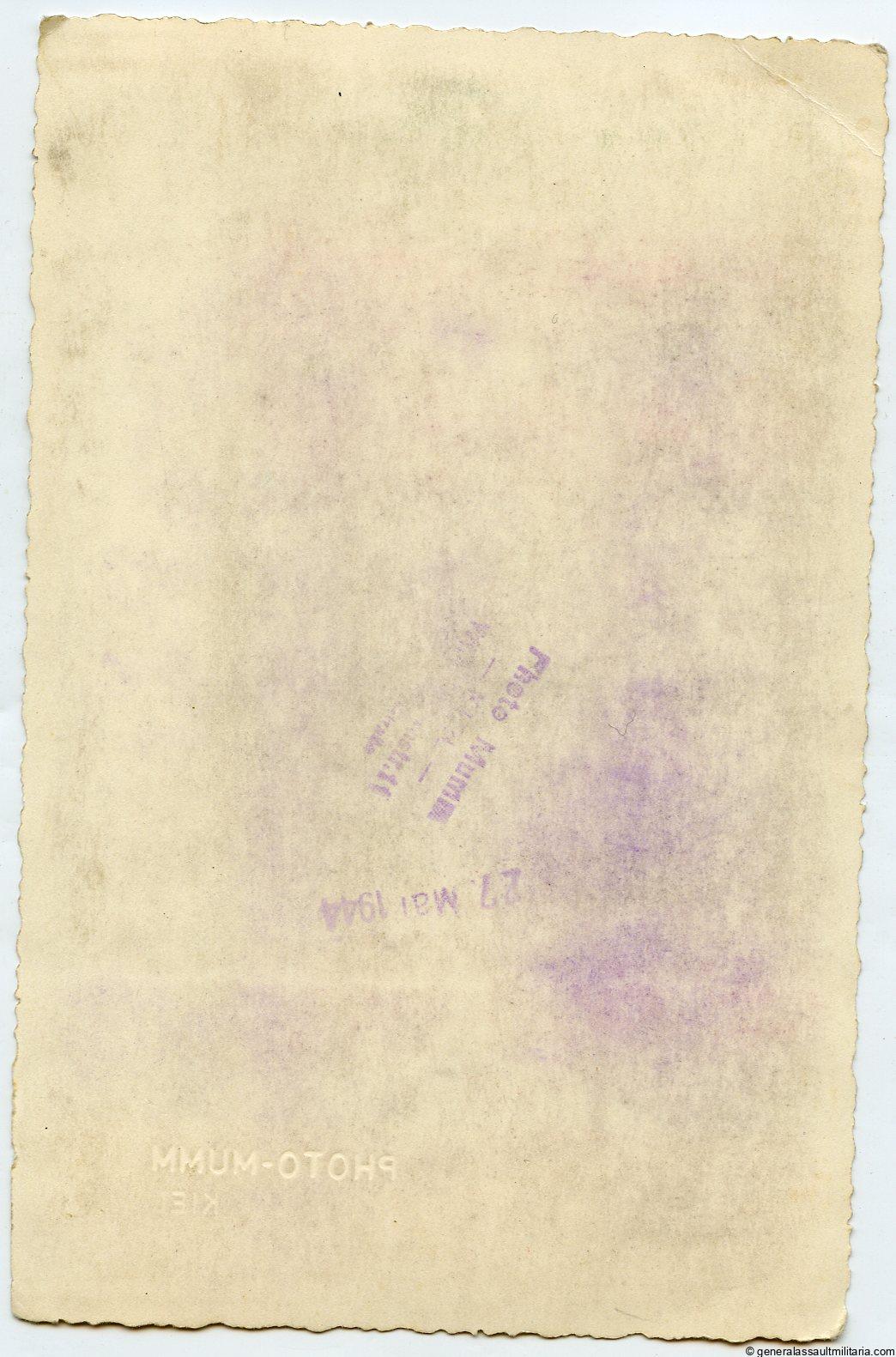 Luftwaffe Recon German cross in gold portrait. Slightly larger than postcard size portrait of a unknown Luftwaffe Oberleutnant wearing the DKIG, Recon clasp with hanger, EK1, Observer badge and DRL. Remains in excellent condition with no staining or damage. Was produced on umarked photo paper and stamped with the Atelier stamp Photo-Mumm Kiel. Dated 27 Mai 1944.