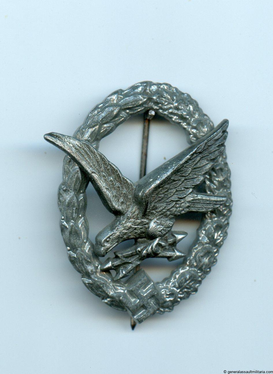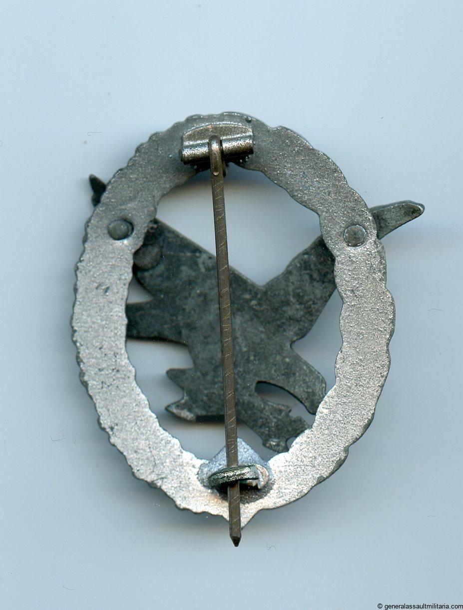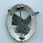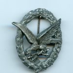 Luftwaffe radio operator air gunner badge – Friedrich Linden, Lüdenscheid. Late war zinc ‘Fliegerschützenabzeichen’ with typical S&L setup and design. lightly worn condition with nearly all its finish present on the front and prefect finish remaining on the back. Good looking late war Luftwaffe badge.