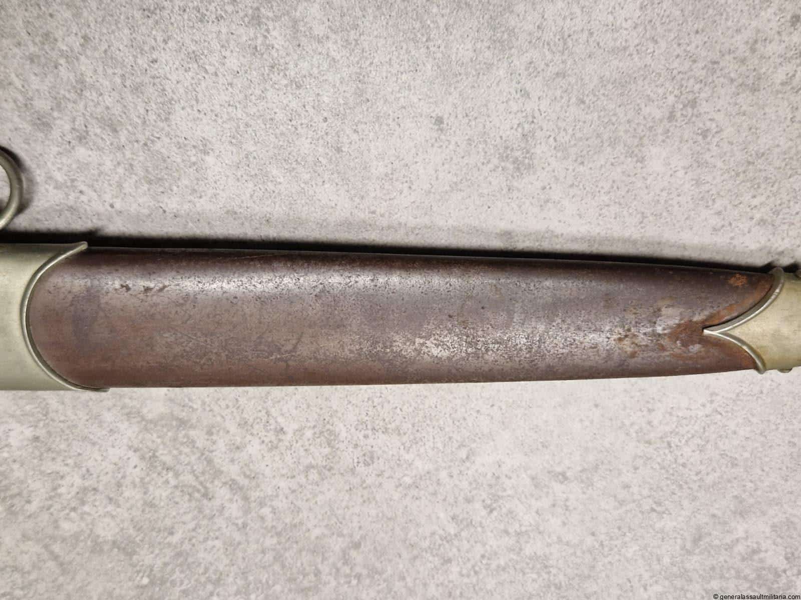 M33 Ground Röhm SA-Dagger Wm – Anton Wingen Jr. – Solingen. Early 1930s model 33 SA dagger with anodized scabbard, nickel silver fittings, guards and eagle. Remains in fully untouched condition with a beautiful great patina on the nickel silver parts and still most of the anodizing on the scabbard. Wooden grip is in excellent condition with clean untouched inlay on the enamel SA sign and eagle. Screws show the same patina and shows no sign of any opening in a very long time. The scabbard shows some light rust but remains fully uncleaned and with most of the finish still present. The tip of scabbard shows a slight dent with equally good patina and has been there for a very long time. Blade rates excellent condition with a clean motto and full ground Röhm on the other side, partially over the Wingen logo. Great untouched dagger with Westmark stamp on the guard.