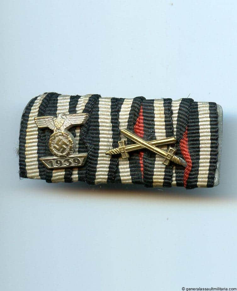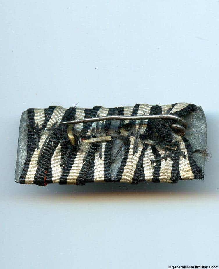 Small 2 piece ribbon bar with repeat clasp attachment. No backing and ribbon fully attached around the bar. Lightly worn condition.