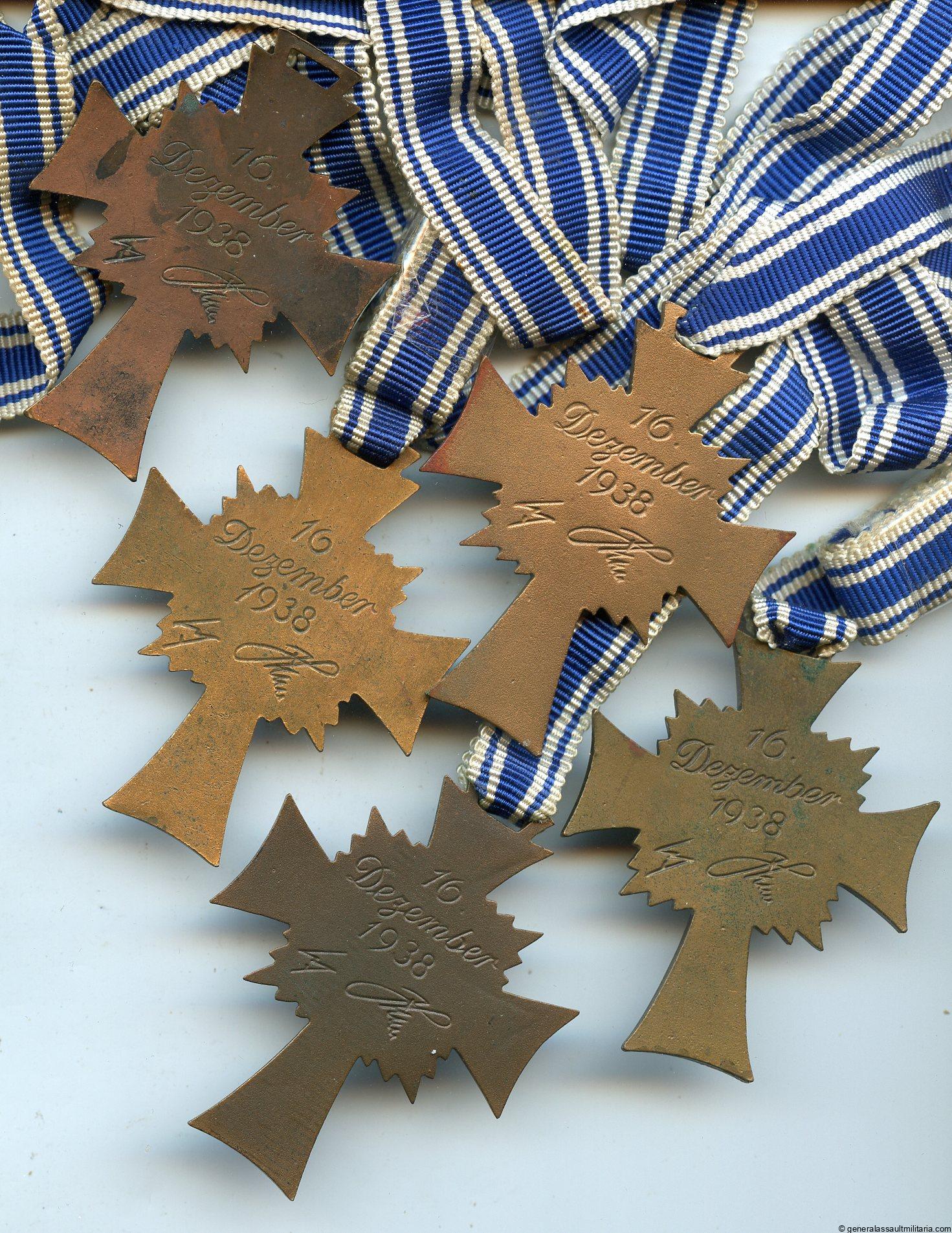 Mothers cross in bronze. Tombac construction with enamel inlay and bronze finish. All remain in excellent condition with all the finish present and no damage to the enamel. Come with long ribbon.