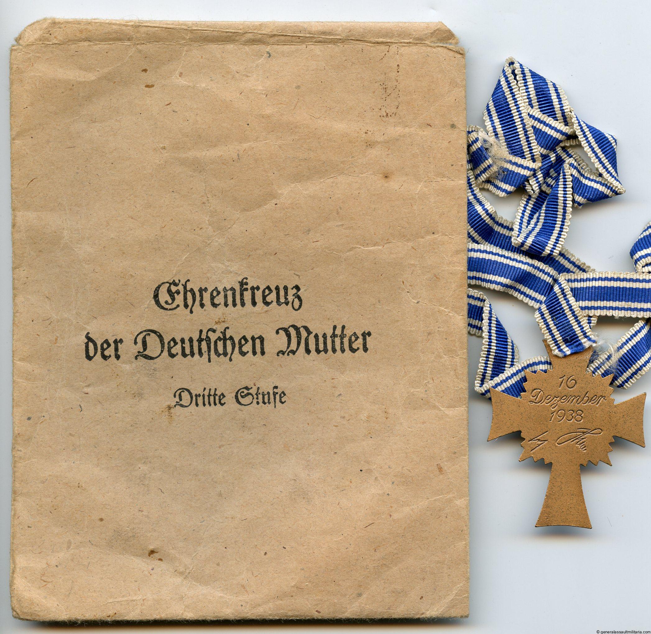 Mothers cross in bronze set – Frank & Reif, Stuttgart. Tombac medal with bronze finish and enamel inlay. Excellent mint condition with full length ribbon and matching packet. Packets shows slight wear but remains in very good condition.