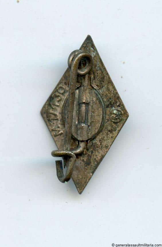 NS Studentenbund membership badge – RZM M1/130 Grossmann & Co, Wien. Tombac diamond with enamel inlay and RZM M1/130 makers mark. Remains in good condition with some wear and patina on the silver finish.