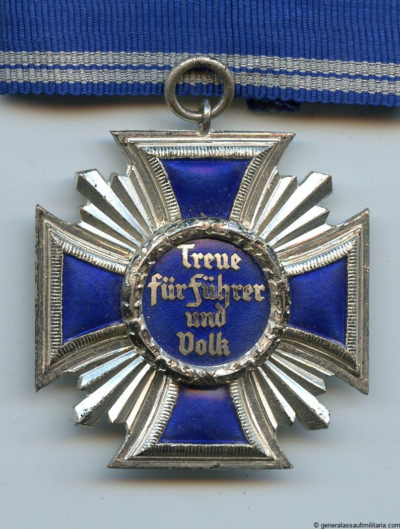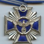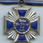 NSDAP 15 year long service medal – Unknown maker. Tombac NSDAP medal made from three pieces and blue enamel inlay. Remains in very good condition and has its silver finish nearly fully present. Sharp looking medal in nicely preserved condition. Awarded for 15 year loyal membership to the NSDAP party.