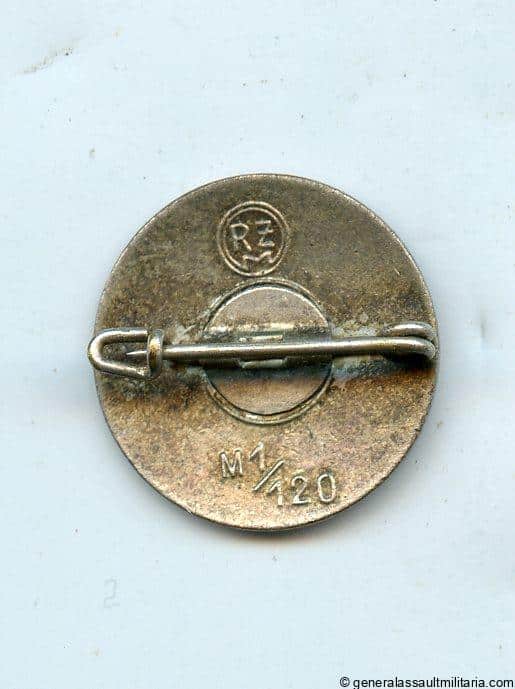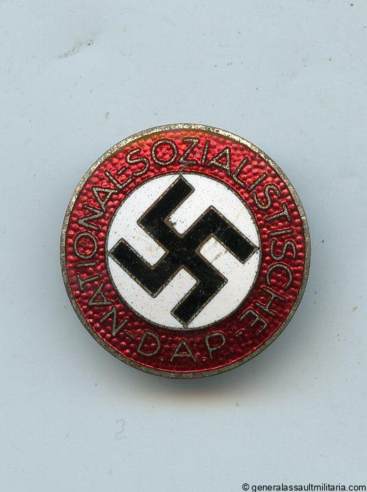 NSDAP party badge – RZM M1/120 Wilhelm Deumer, Lüdenscheid. Early pre war tombac construction with silver plated finish and enamel inlay. Maker marked RZM M1/120 for Deumer. Remains in excellent very lightly to unworn condition.