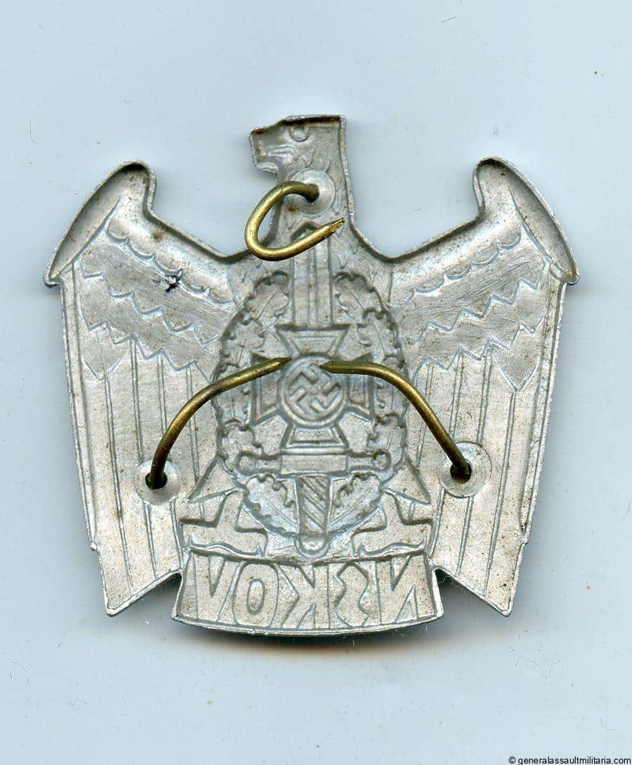 NSKOV cap badge. Aluminum construction with three prong setup. Remains in lightly worn condition with the black and red paint nicely present.