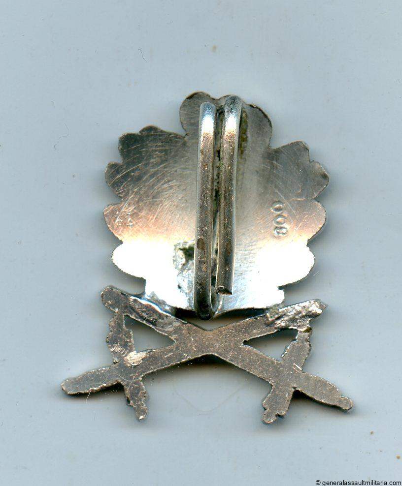 Oak leaves with swords – Steinhauer & Lück, Lüdenscheid. Post war 1957 set of die pressed oak leaves with swords in 800 marked silver. Remain in near mint condition with a slight patina. This type was most likely produced somewhere shortly after the 1960s or a bit earlier. Great looking replacement piece in very good quality with excellent details.