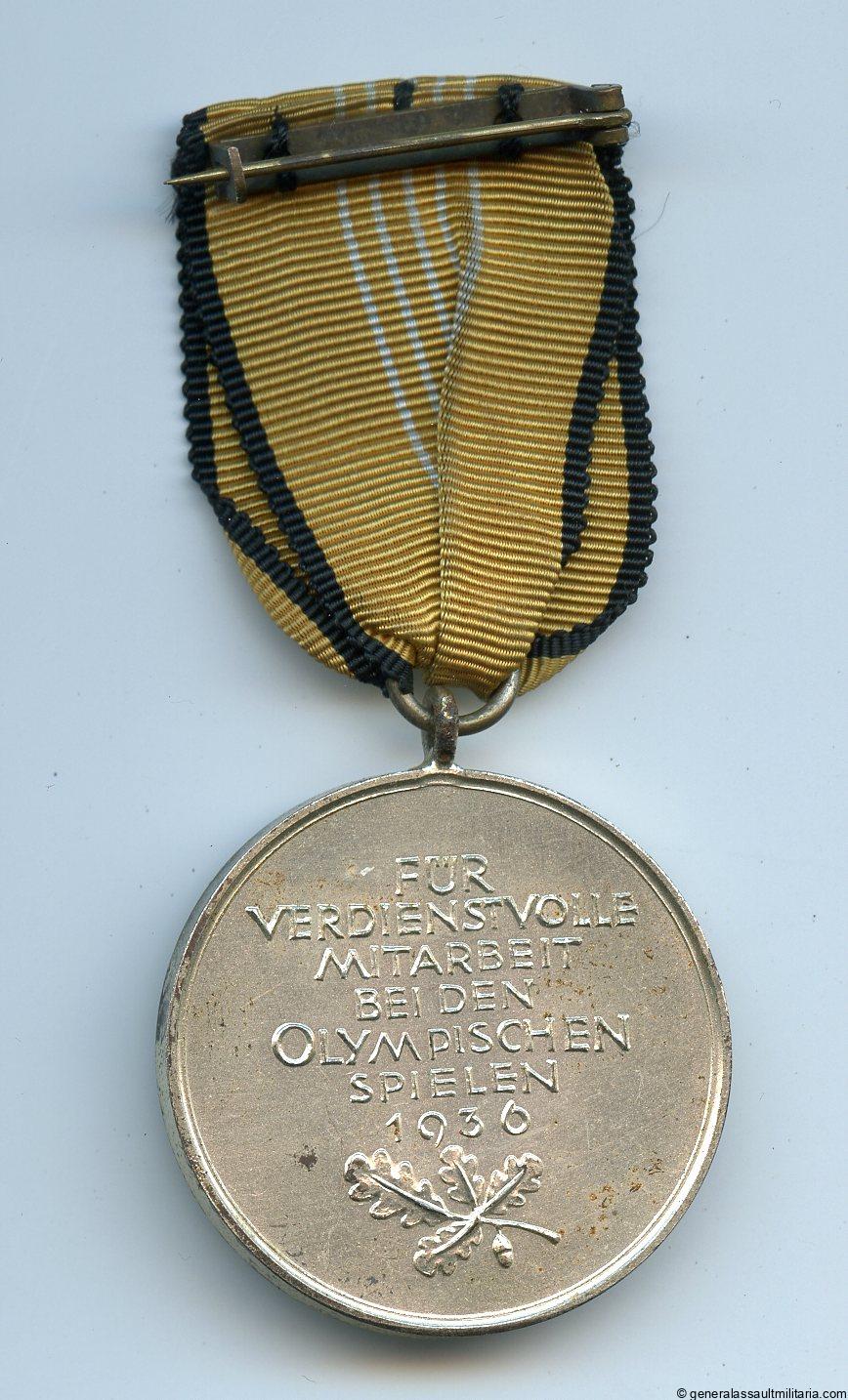 Olympia 1936 medal. Pre war steel construction with silver finish and ribbon with setup device. Remains in excellent condition with minimal wear and nearly all the finish remaining. Very nicely preserved example!