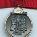 Ost medal – MM61 Rudolf Karneth, Gablonz. Zinc ost medal with PkZ 61 mark in the ring for RK. Remains in very good condition with only a slight silver patina on the silver finished parts. More uncommon ost medal with unused 10+cm ribbon.