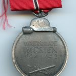 Ost medal – MM88 Werner Redo, Saarlautern. Zinc ‘Winterschlacht im Osten’ medal with still nicely finished observe and 88 makers mark in the ring for Werner Redo. Comes with a 12cm + length ribbon.