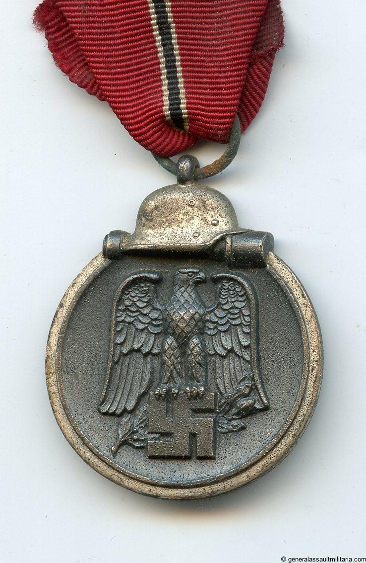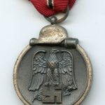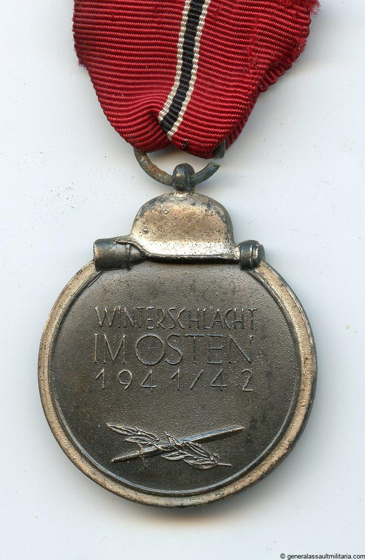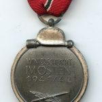Ost medal – Unmarked. Zinc Winterschlacht im Osten medal with with most of the finish still present and only light patina. Ring has some light surface oxidation and the 8-10cm ribbon was cut off at the back end.