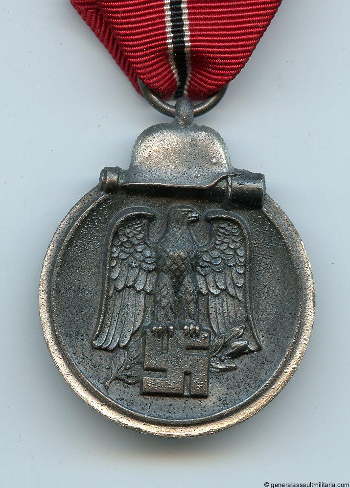 Ost medal – unmarked. Zinc ost medal without PkZ mark in the ring. Remains in excellent condition with most of the finish still present and good bright look to the silver finish. Has the bright silver finish on the helmet and rim. great example with short 10cm ribbon.