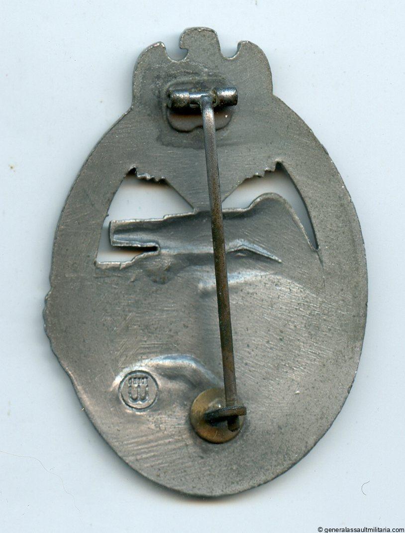 Panzer assault badge in bronze – E.F. Wiedmann, Frankfurt. Mid to late war silver Wiedmann marked PAB in near mint condition. Appears to be unworn and has nearly perfect silver finish remaining. Shows no oxidation or damage, top preserved Wiedmann.