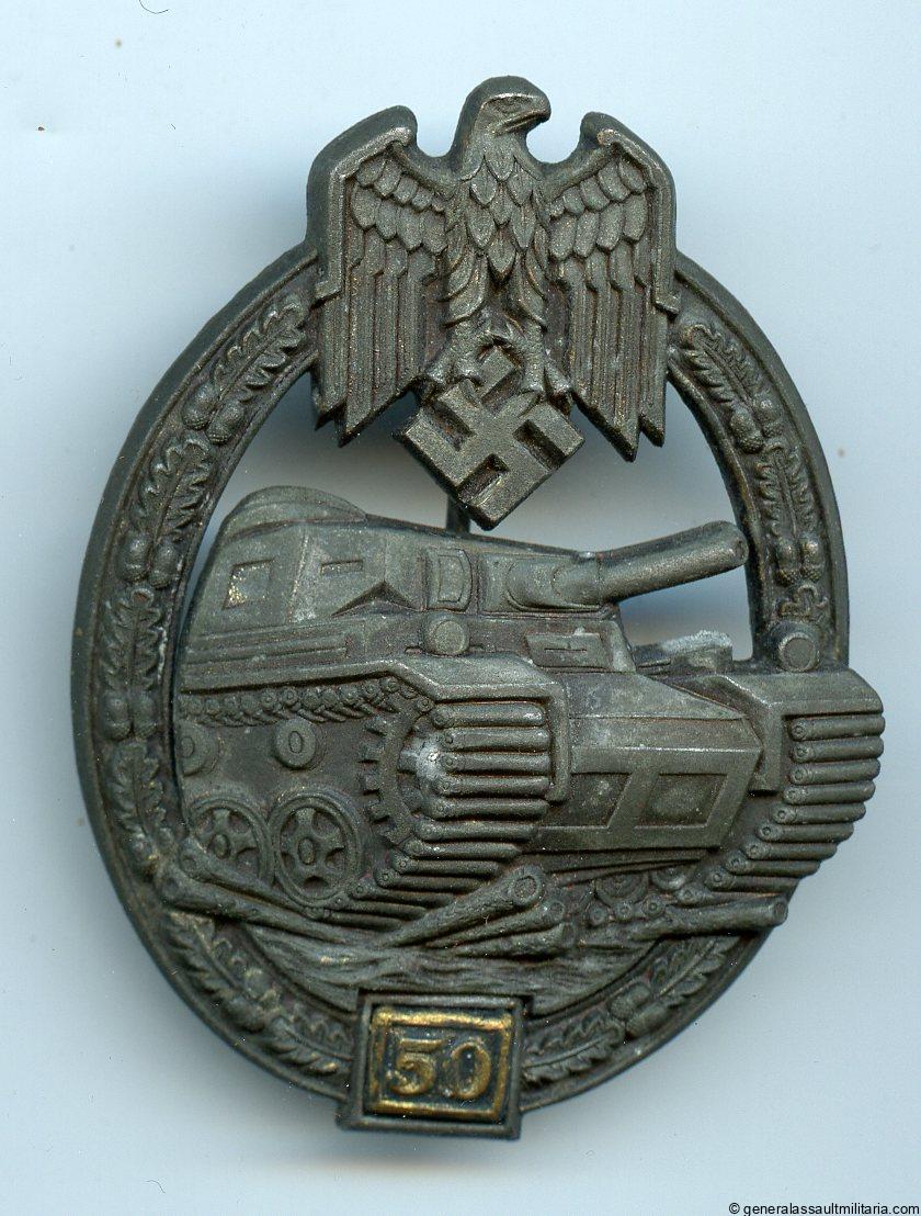 Panzer assault badge in bronze numbered 50 – Gustav Brehmer, Markneukirchen