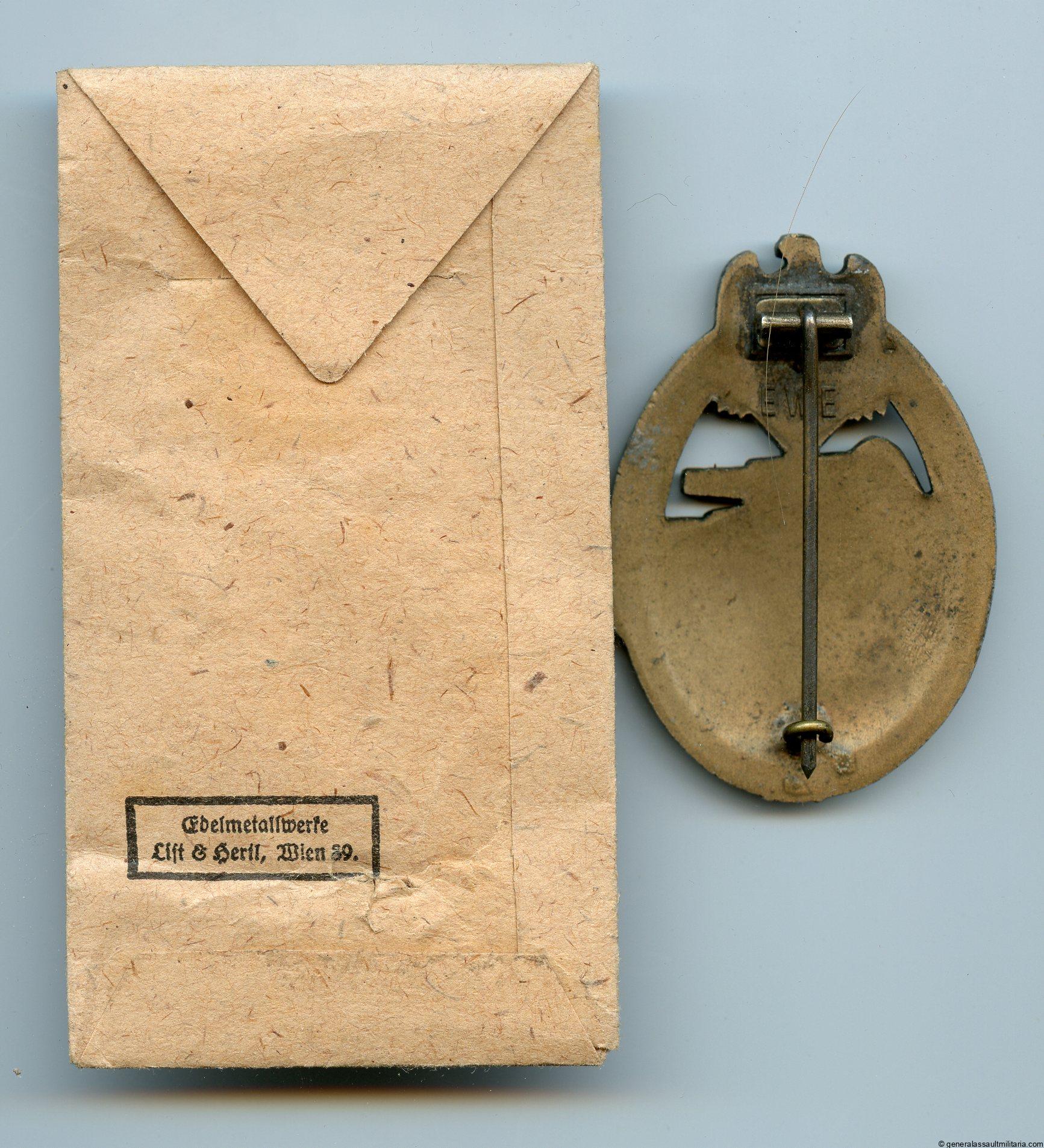Panzer assault badge in bronze + packet – Edelmetallwerke List & Hertl, Wien