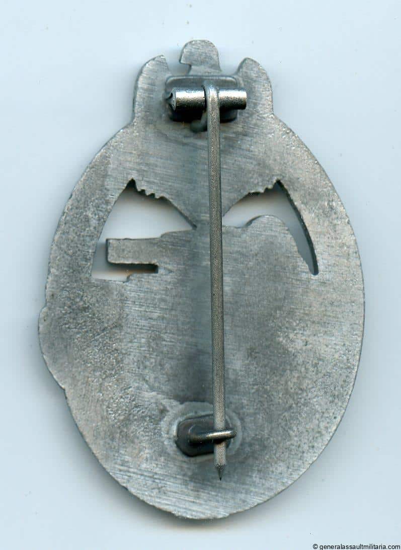 Panzer assault badge in silver – Alois Rettenmaier, Schwäbisch Gmünd. Mid to late war heavy solid zinc PAB with silver finish and Rettenmaier Vienna design. Remains in mint unworn condition with perfect finish on the front and minimal discoloration on the reverse. Perfect example!