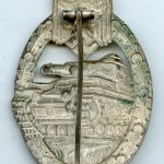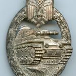 Panzer assault badge in silver – Assmann & Söhne, Lüdenscheid. Mid war Cupal variant of the hollow Assmann marked PAB. Remains in nicely worn condition and shows some of the copper shining through on the front. The finish has held up well and has retained most of the bright look. Sought after and uncommon PAB in very nice condition, without damage or repairs.