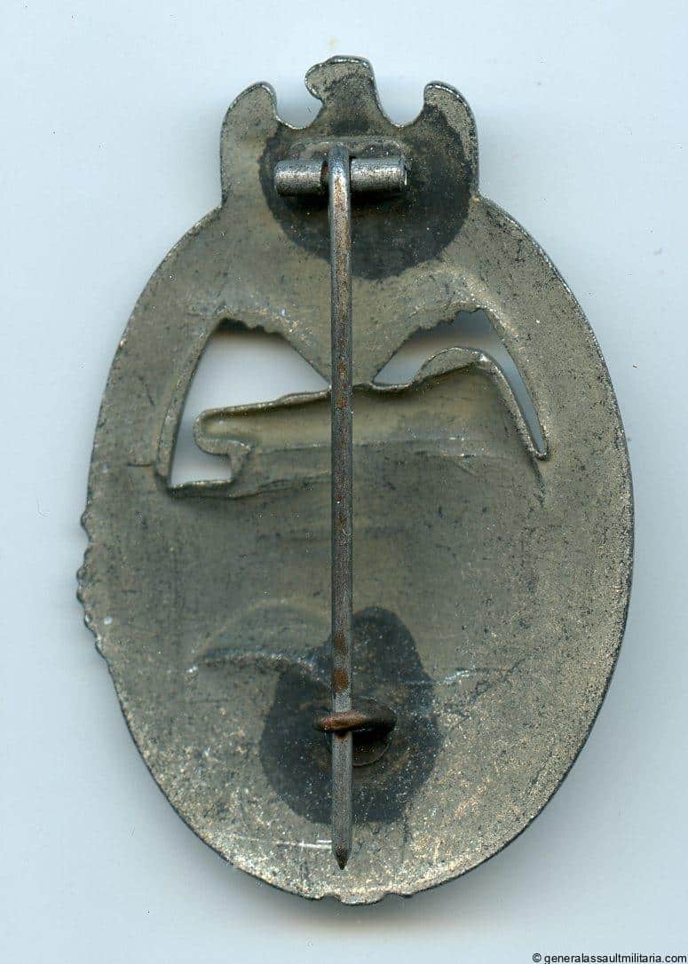Panzer assault badge in silver – Funke & Brüninghaus, Lüdenscheid. Mid to late war semi hollow zinc PAB with Daisy design linked to F&BL. Remains in the unworn condition and has nearly perfect finish remaining on the front. The differently finished reverse shows a slight patina but retains an equally unworn appearance. One of the best detailed and sharpest designed PAB. Also known as the Daisy 2.
