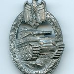 Panzer assault badge in silver – Hermann Aurich, Dresden. Unworn and ‘mint’ late war zinc HA PAB with galvanized(Glanzverzinkt) finish. Remains in unworn condition with only minor loss of brightness from storage. The finish is fully present and the badge has a very bright appearance when held in the light.