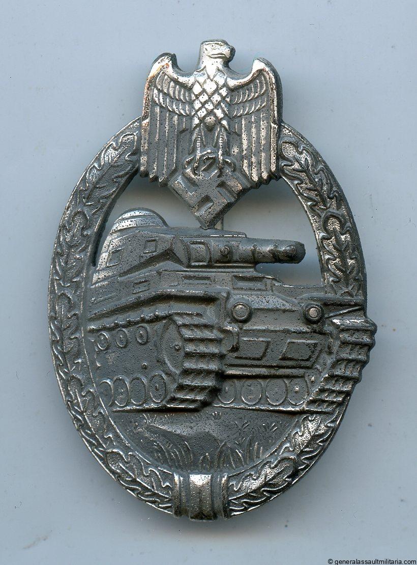 Panzer assault badge in silver – Steinhauer & Lück, Lüdenscheid. So called Monster S&L variant, early post war made from zinc with the original S&L die. Remains in unworn condition and remains a sought after and very uncommon post war variant that out classes the wartime quality of the zinc S&L. Interesting variant for the variant collector.