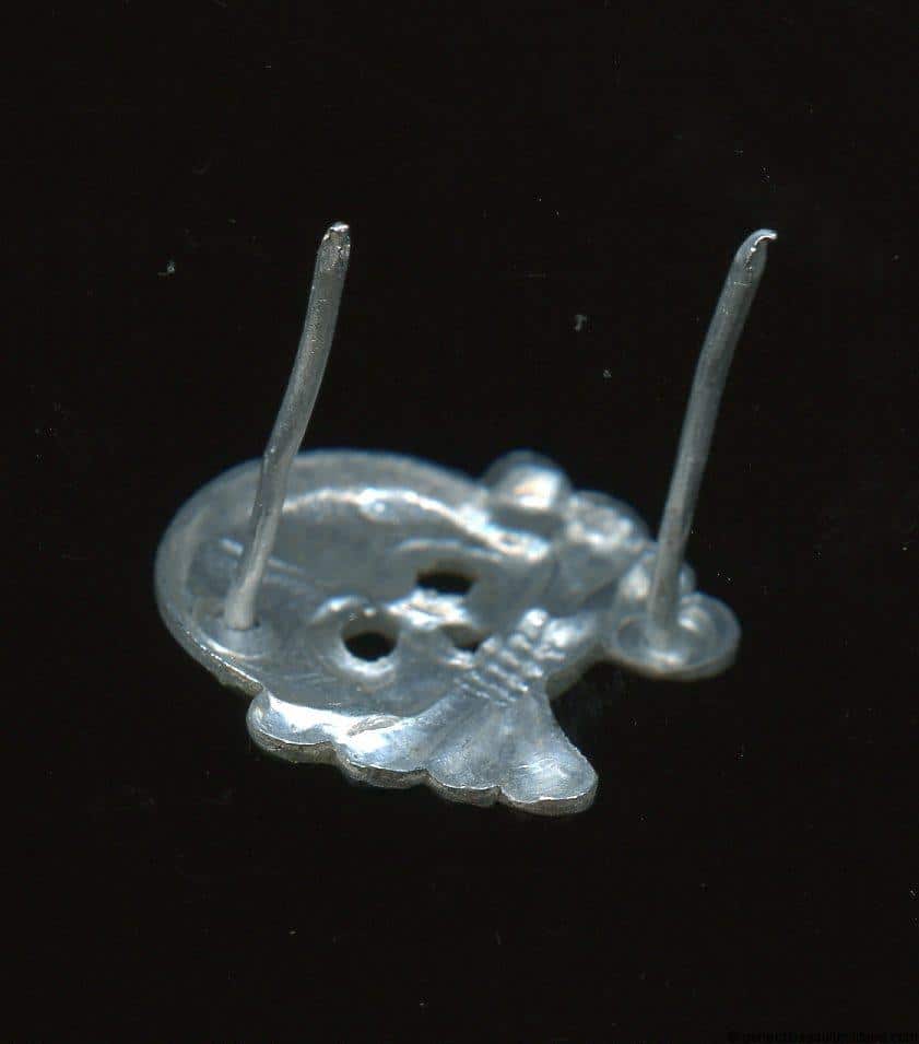 Panzer collar tab skull. Early aluminium Panzer skull with two crimped alu prongs. Remains in excellent condition.