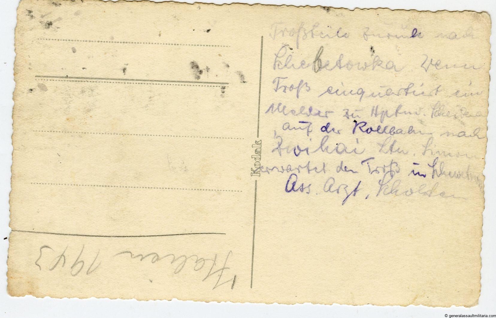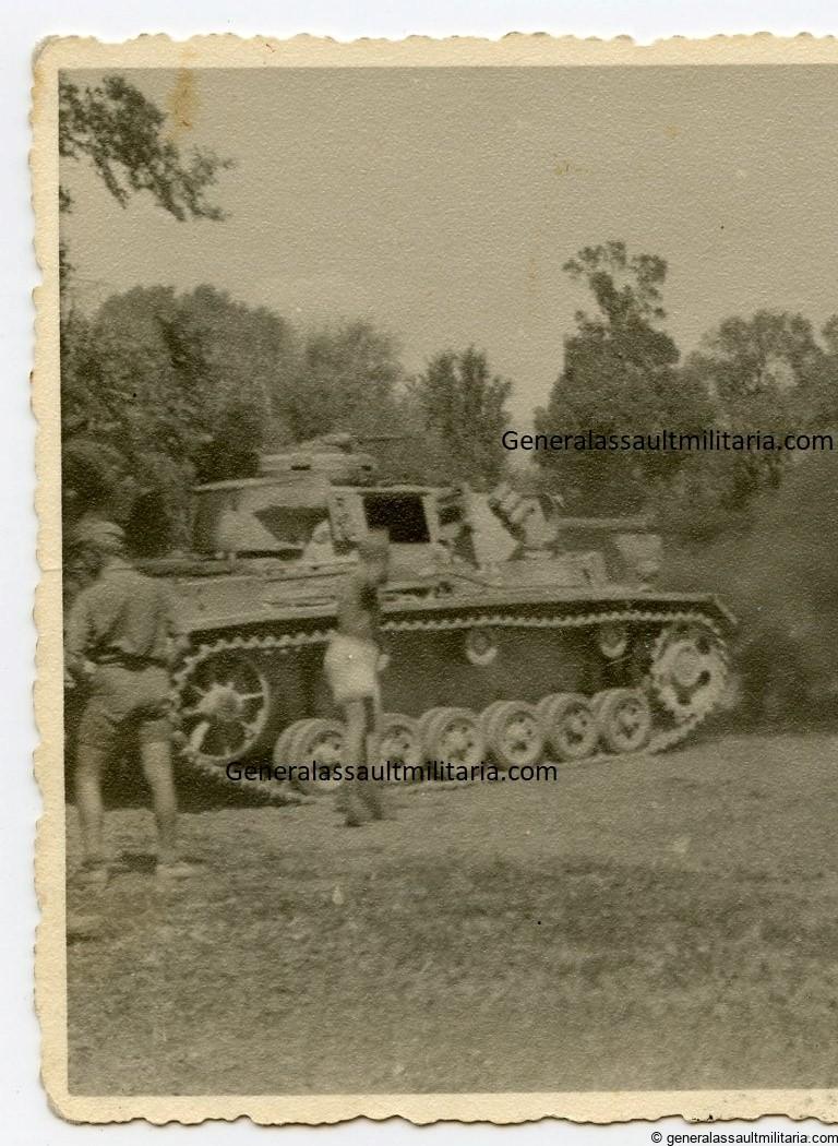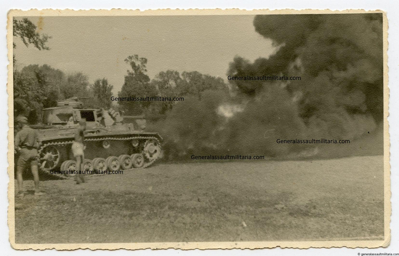 rare Flammpanzer III picture. Postcard size picture of a Flammpanzer III spraying flames. Period Kodak postcard paper and remains in used condition. Good quality portrait with Flammpanzer action in Italy, dated 1943.