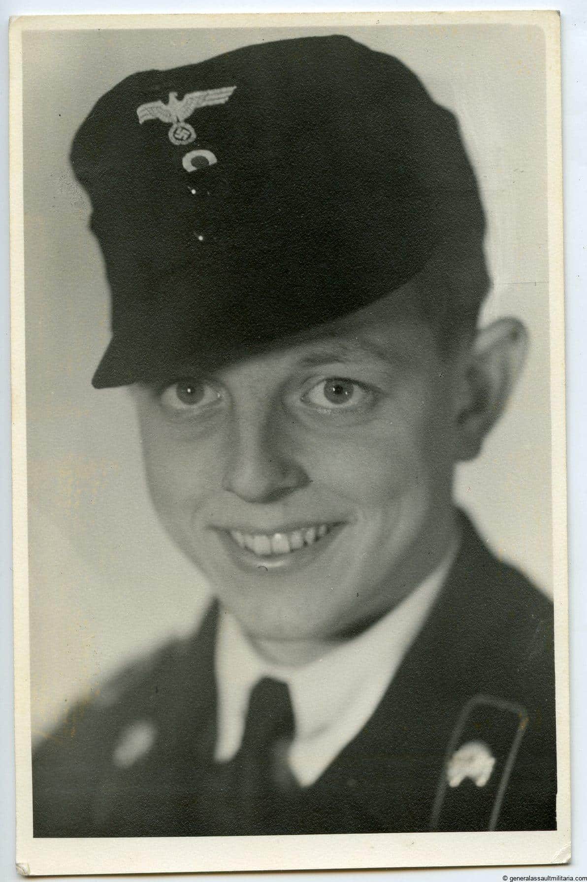 Panzer portrait with M43 cap in wear. Postcard size and written text on the back.
