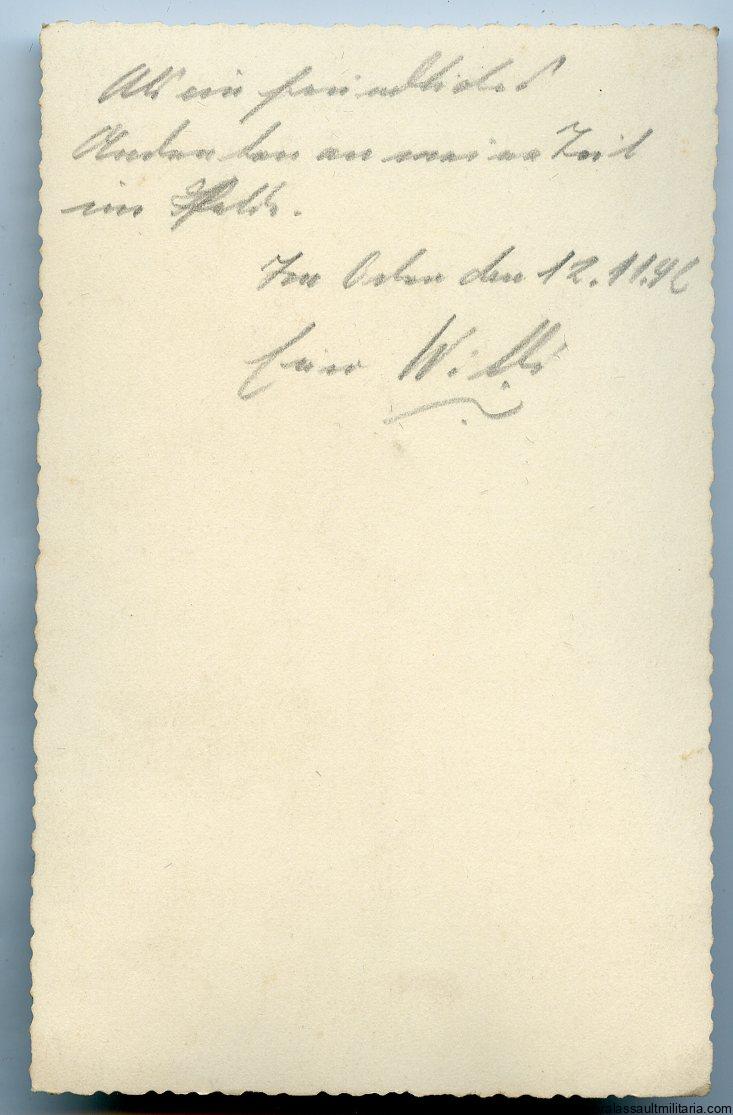 Panzergrenadier portrait with Deumer PAB. postcard size, unmarked photo paper, named and dated late 1942.