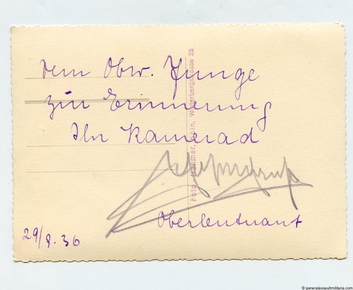 Pour Le Mérite portrait with signature. Slightly larger than postcard size, Unmarked portrait paper, with Köln Atelier stamp and excellent signature on the reverse, dated 1936. Very rare shot of a Cavalry PLM officer.