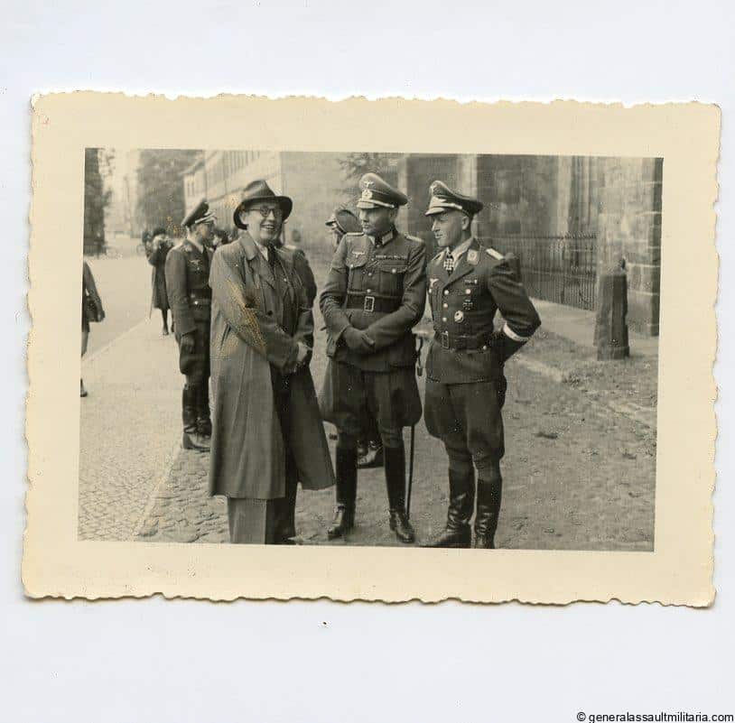 Private made photo 7x9cm – Rudolf Witzig. Private made shot of Knights cross holder and Eben-Emaelraid commander wearing his KC, Kreta cuff title and Army paratrooper badge. Remains in excellent condition, unmarked period photo paper.