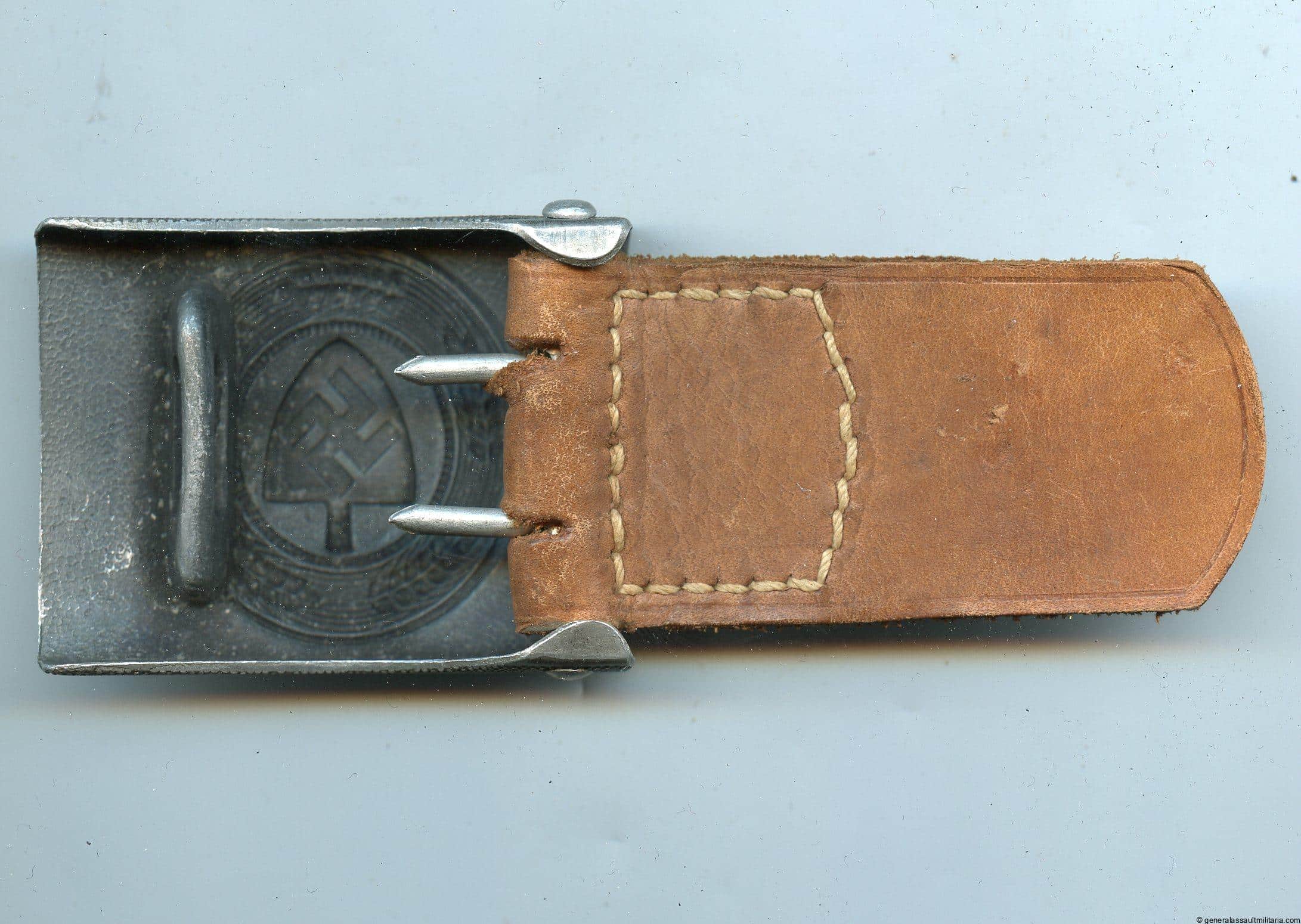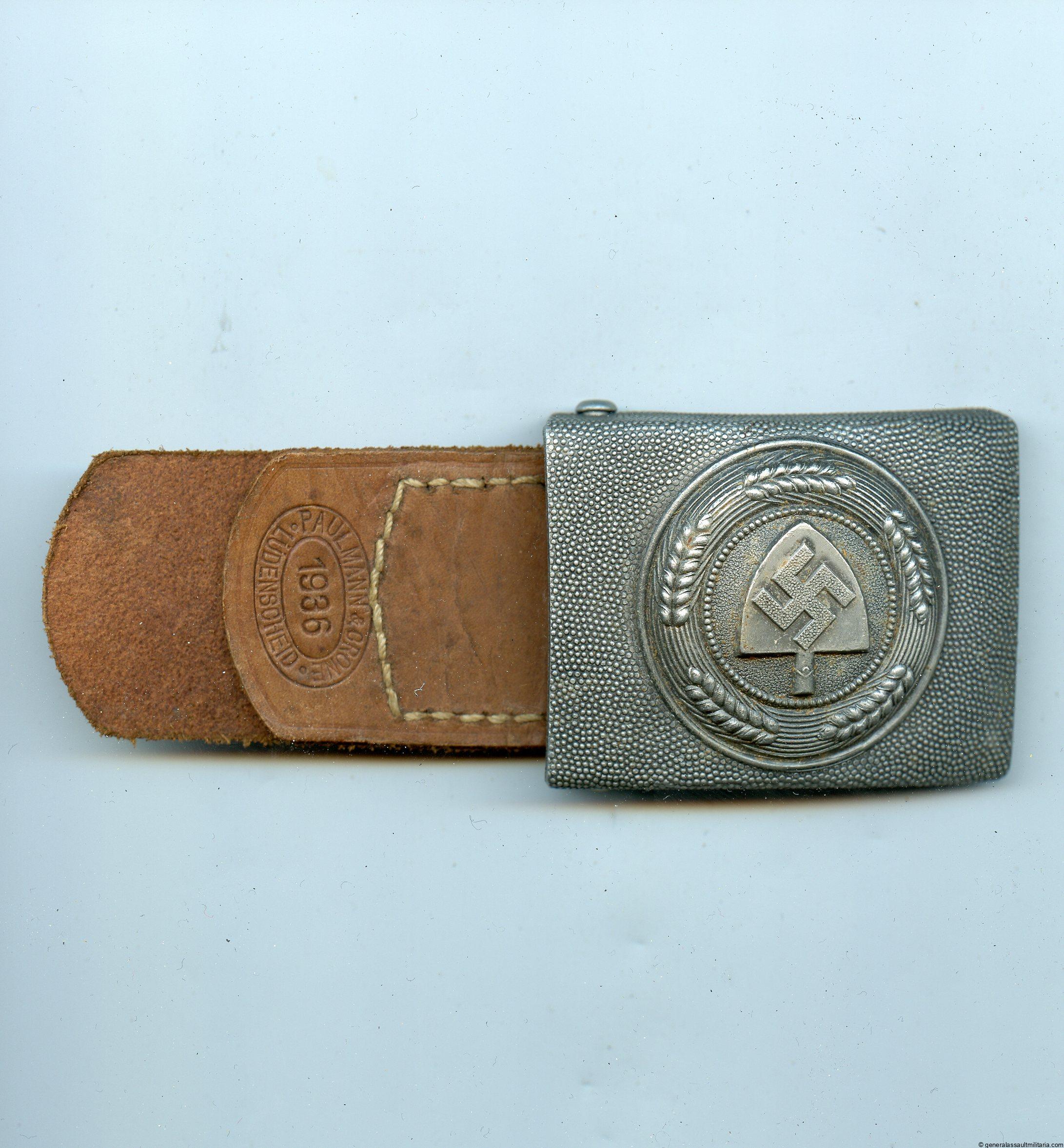 RAD buckle tabbed – Paulmann & Crone, Lüdenscheid. Early pre war 1936 dated and marked Paulmann & Crone tab and unmarked buckle. Remain in excellent lightly worn condition. Very nice matching tabbed buckle set!