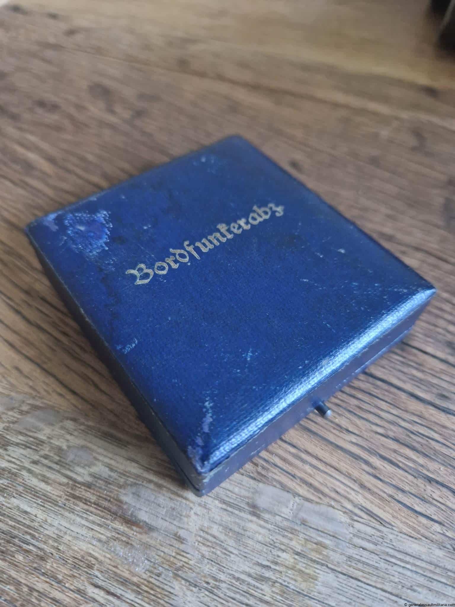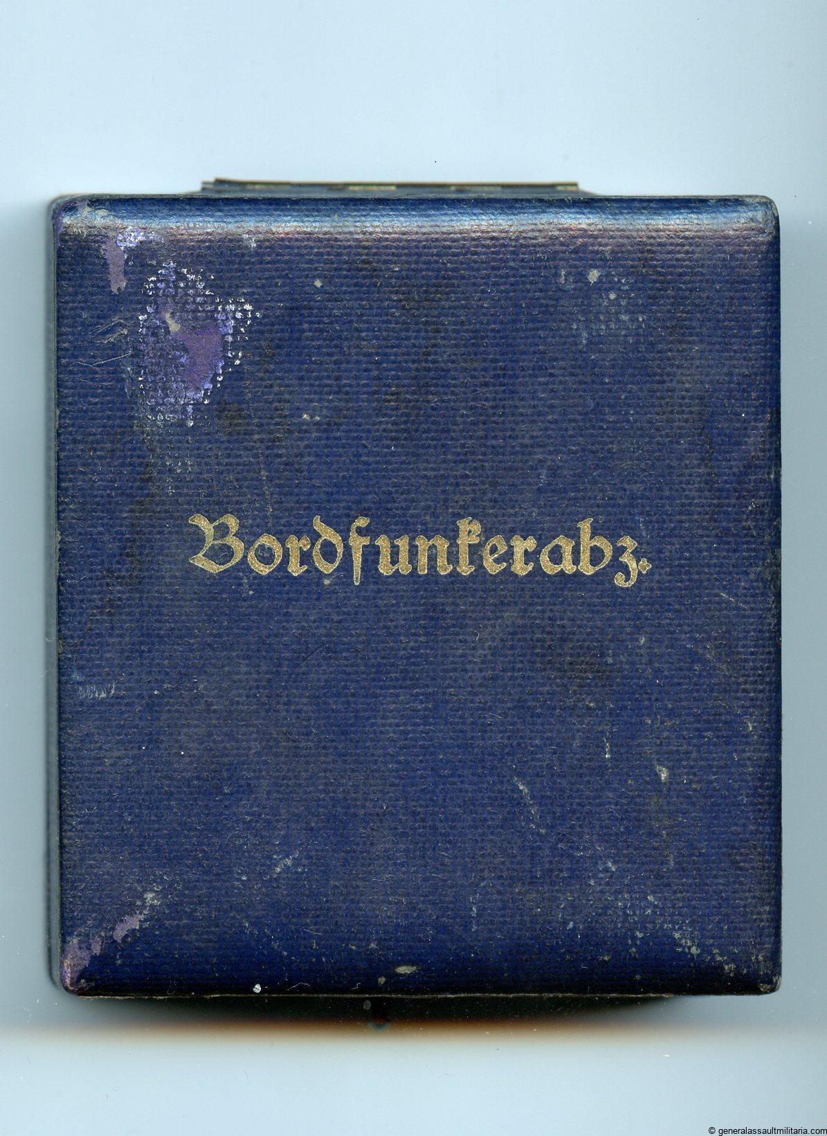 Bordfunkerabzeichen case. Early 1940-1942 case for a variety of early ROAG badge like the J2, B&NL, IMME, Assmann. Remains in good condition with a small spot on the top and some wear. Inside remains in perfect condition with a good deep blue color.