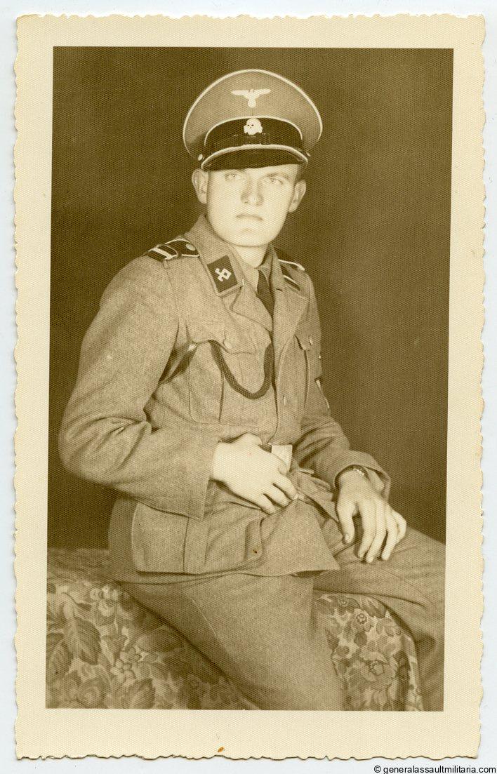 Rare portrait of a member of the 7. SS-Freiwilligen Gebirgs-Division “Prinz Eugen”. Shows the very uncommon Odal rune tab in wear. Very sharp and full size portrait showing the cap and tab nicely in wear. On period Agfa portrait paper with difficult to read atelier stamp. Remains in excellent condition.