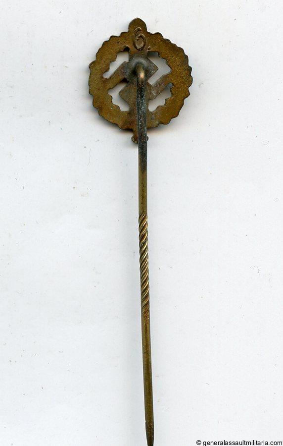 SA sports badge in bronze stickpin – 6(g) mark. Tombac stickpin with two tone bronze finish and 6 mark logo on top. Remains in excellent condition. 16mm