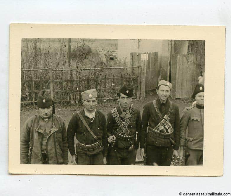 Sharp 6x9cm photo with eastern Europeaan militia. Most likely shows a group of Serbian volunteers with their typical bandeliers. Remains in excellent condition, on Agaf Brovira paper, very sharp.