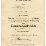 The awar document remains in average condition and was probably stored in side the soldbuch or wehrpass.
