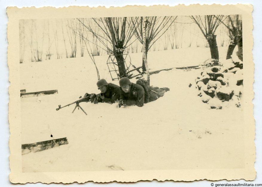6×9 picture of two soldiers in the snow with a Panzerbüchse 39. 7,92×94 mm round specially designed to take out armored targets, about 40 000 of these build. Remains in good condition with no damaged and was developed on period unmarked paper.