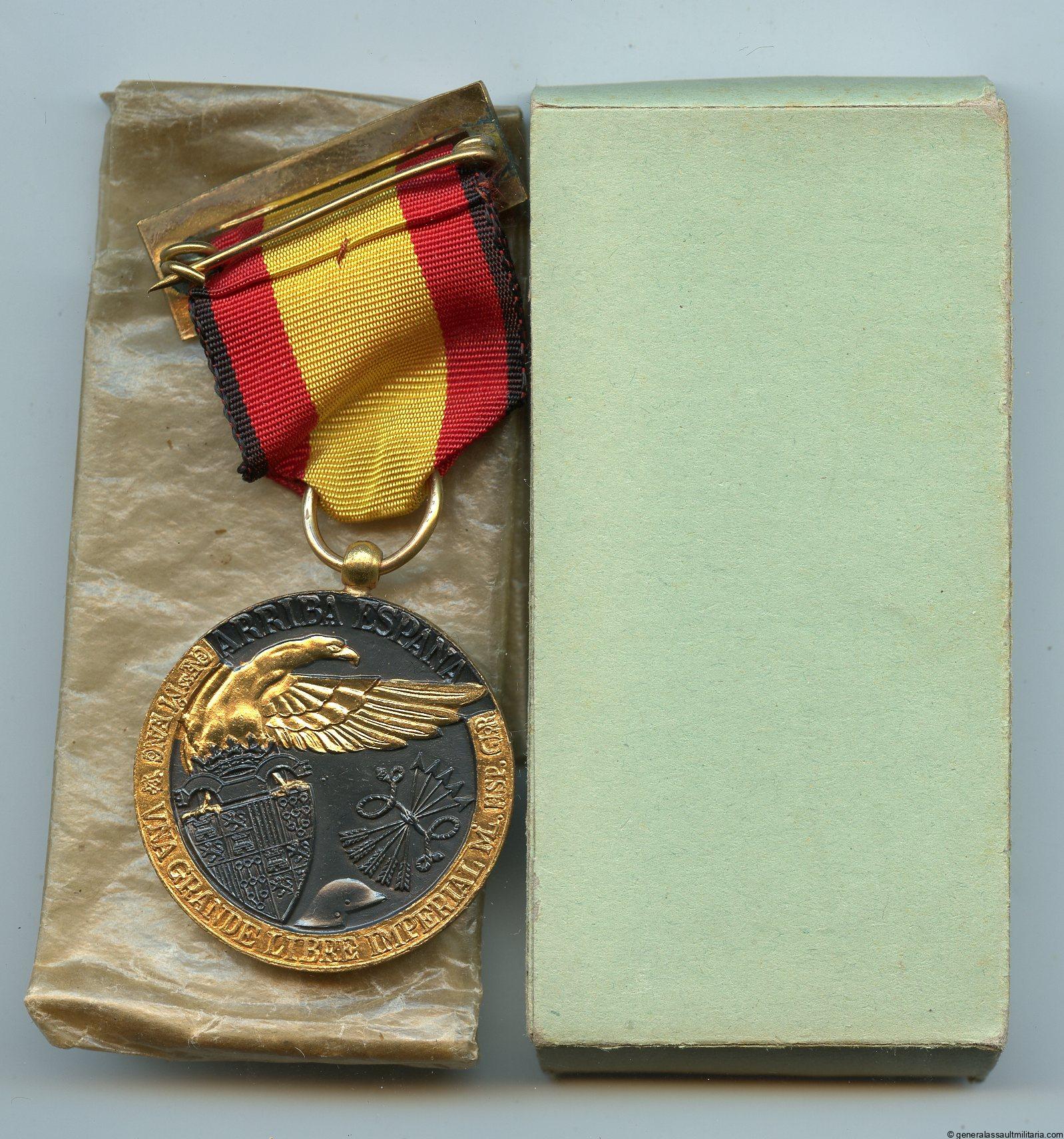 Spanish civil war medal + box. Tombac medal for the civil war in Spain that was awarded to all participants. Perfect mint condition.