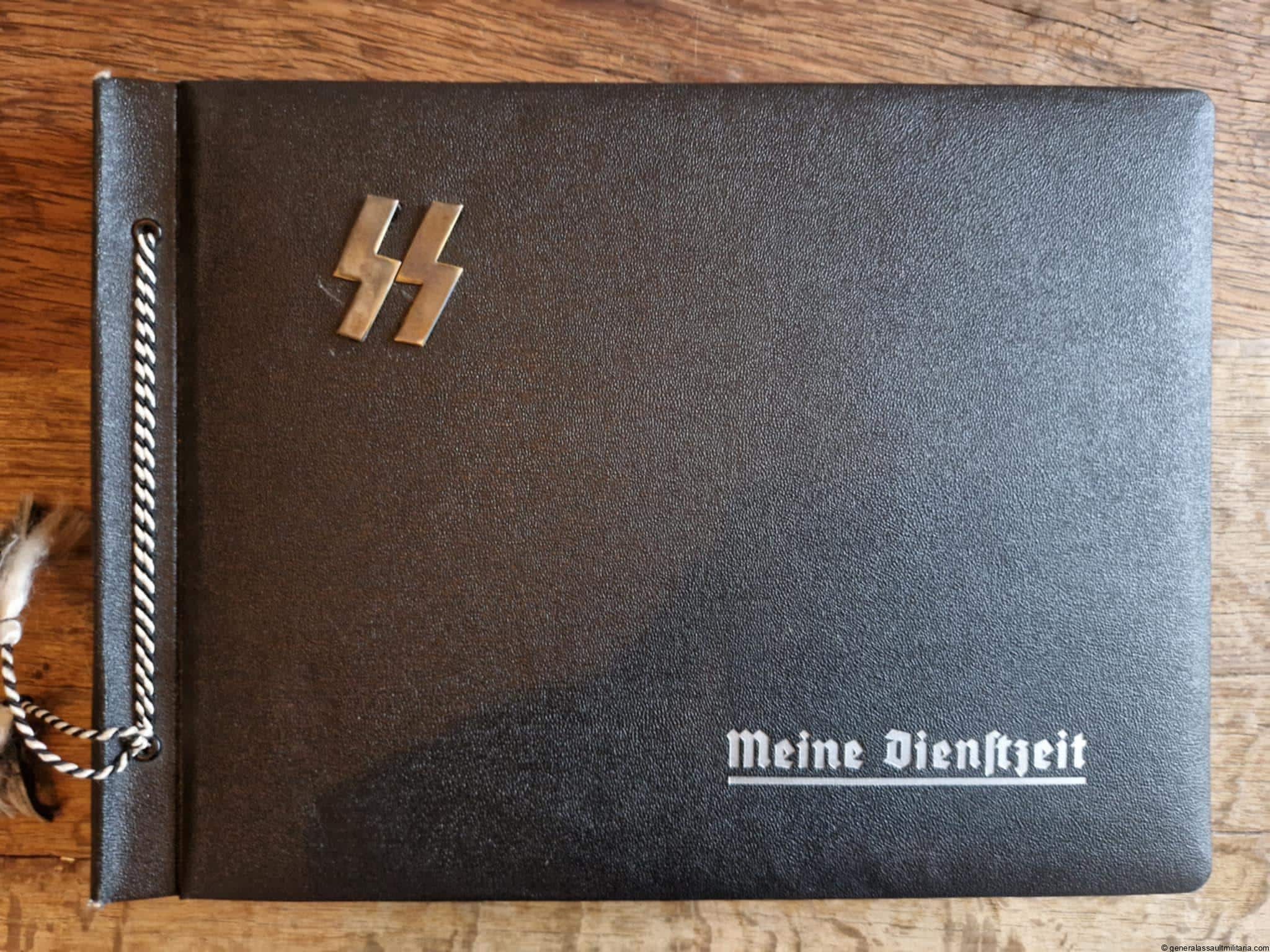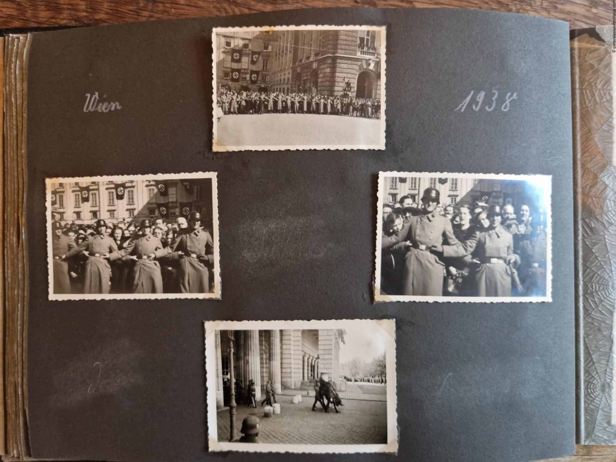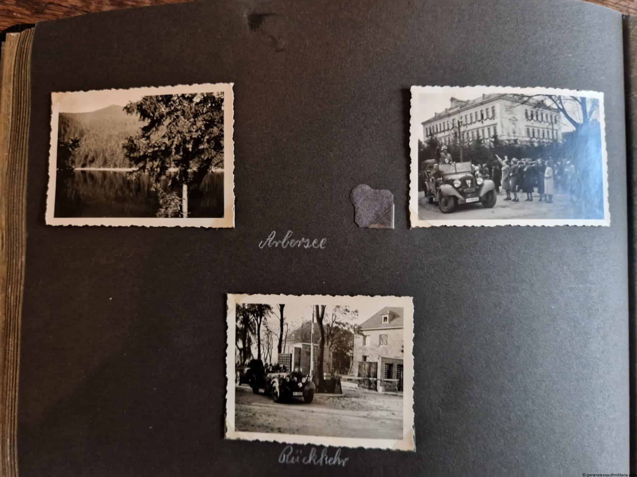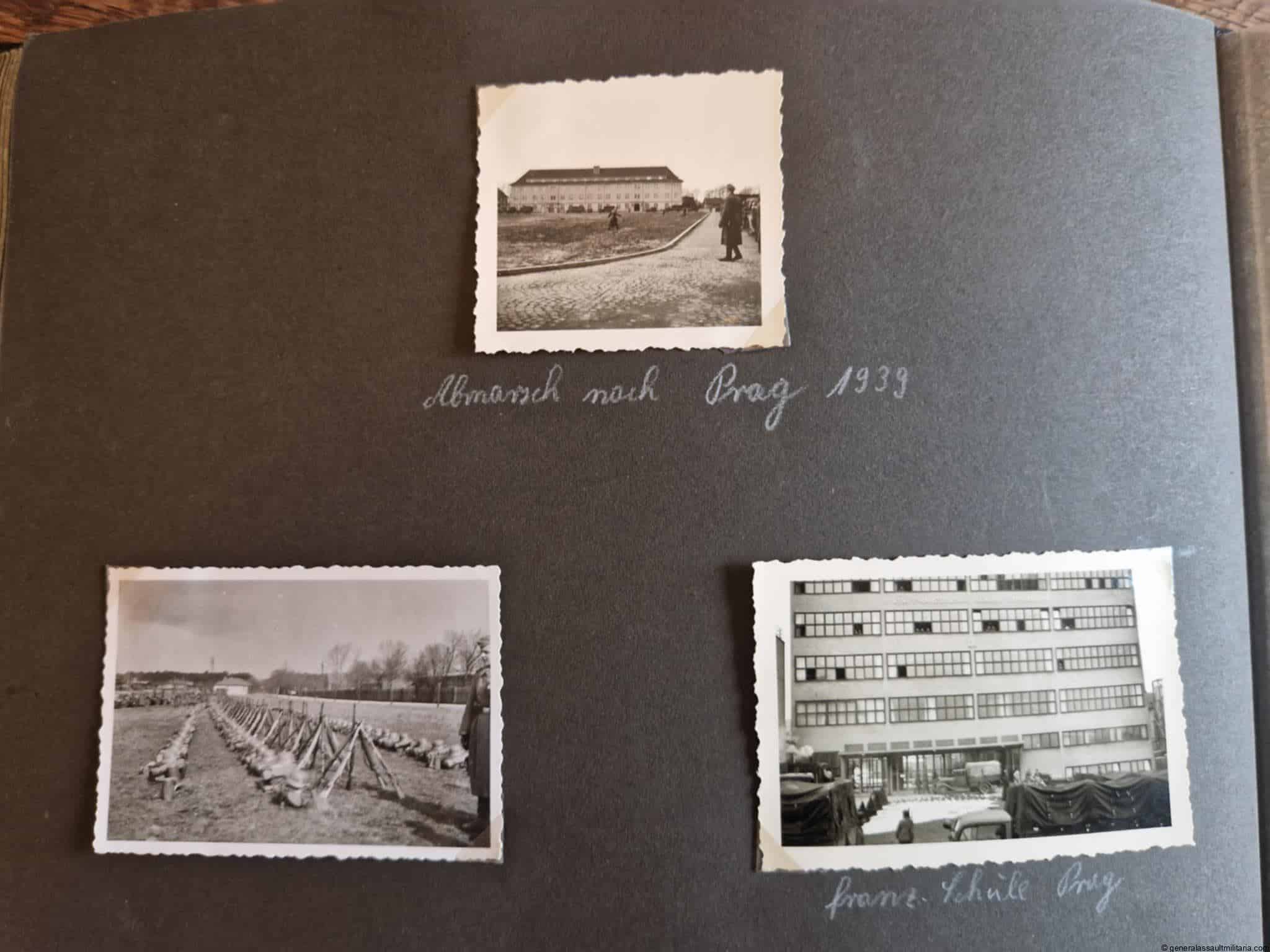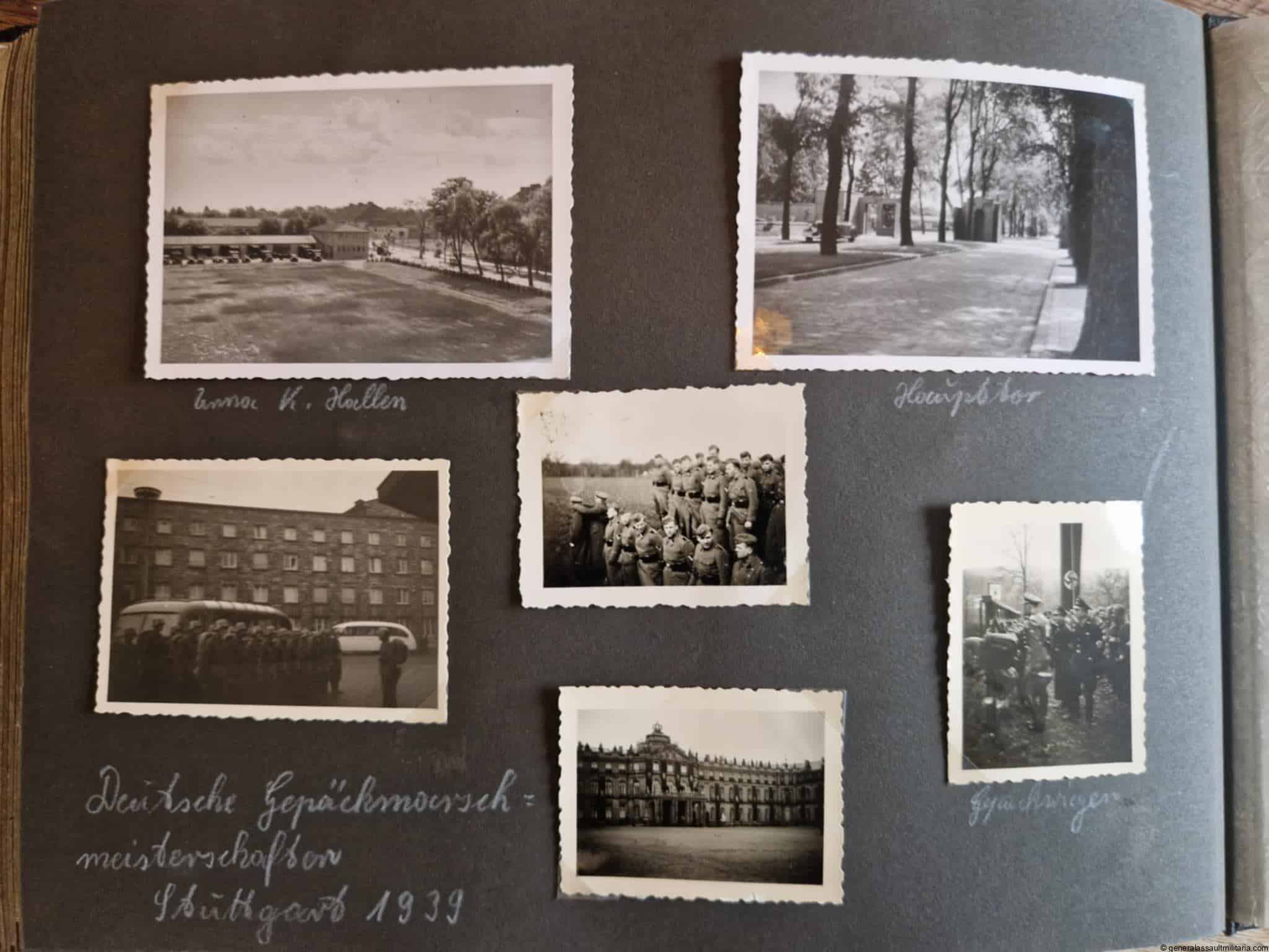 SS-Nachrichtensturmbann Album. Very interesting black SS album with many high quality photos from a member of the SS-Nachrichtensturmbann. Pictures range from 1936 till 1940. Shows many training photos, parades in Austria, Sudetenland(Prag) and Nürnberg. Some very sharp looking Music Corps photos and 2 portraits. A few pictures are missing here and there, about 5-6 in total. Total count is 179 pictures present.