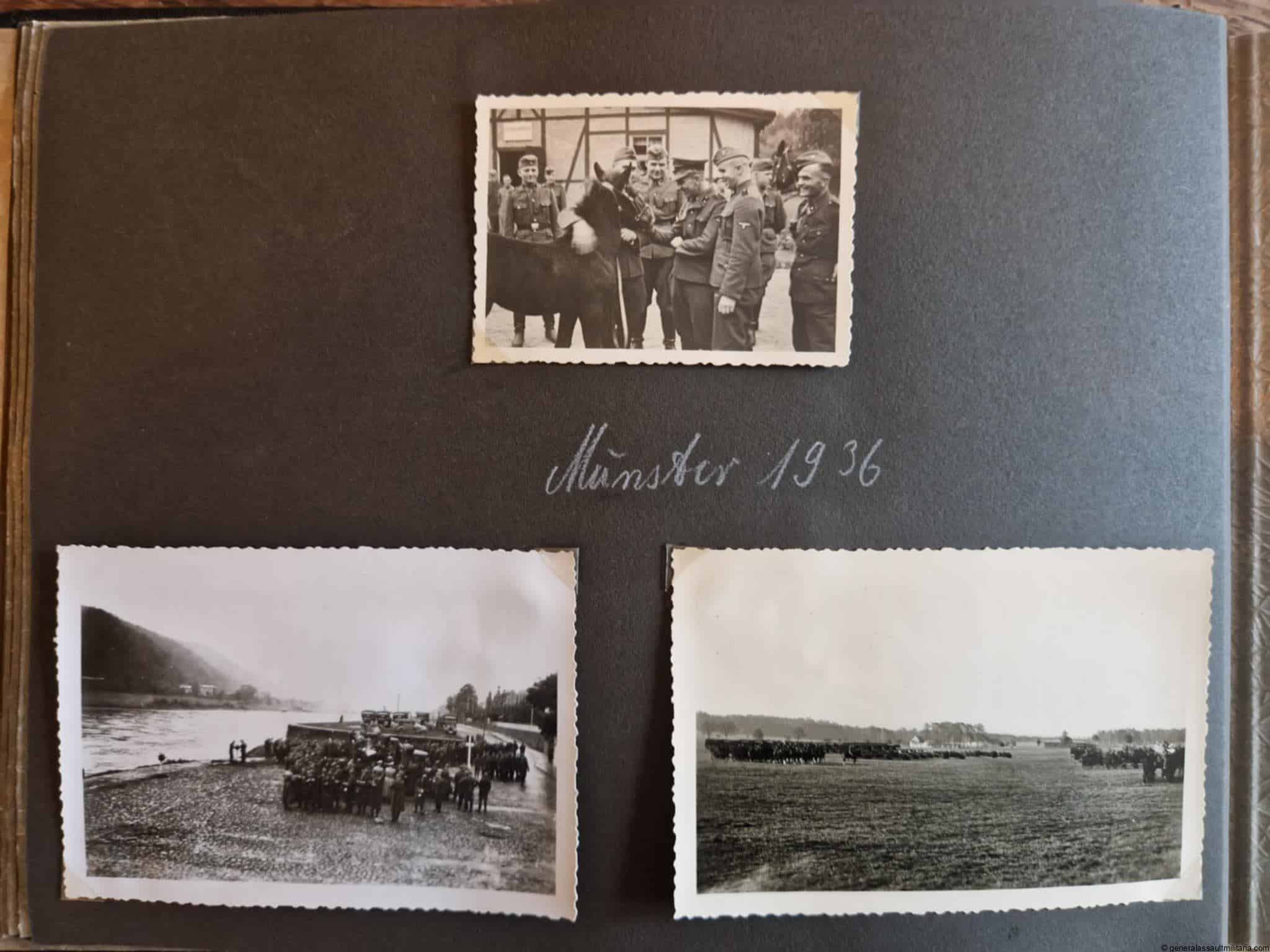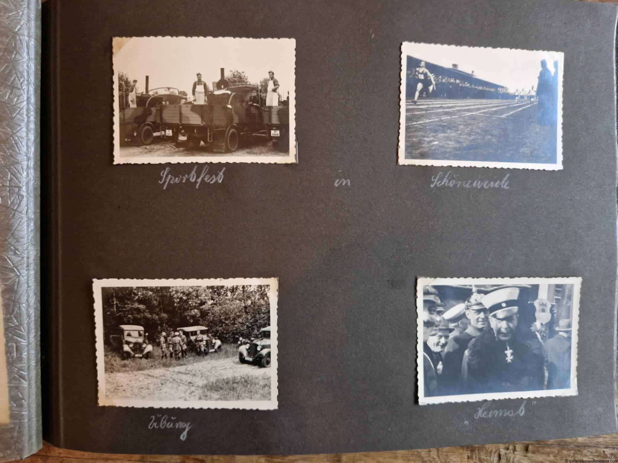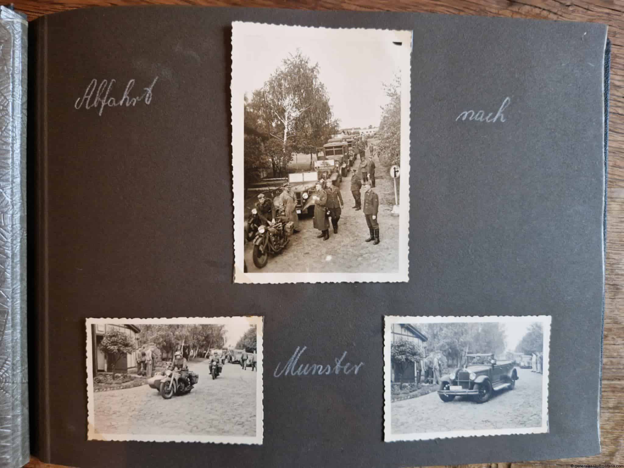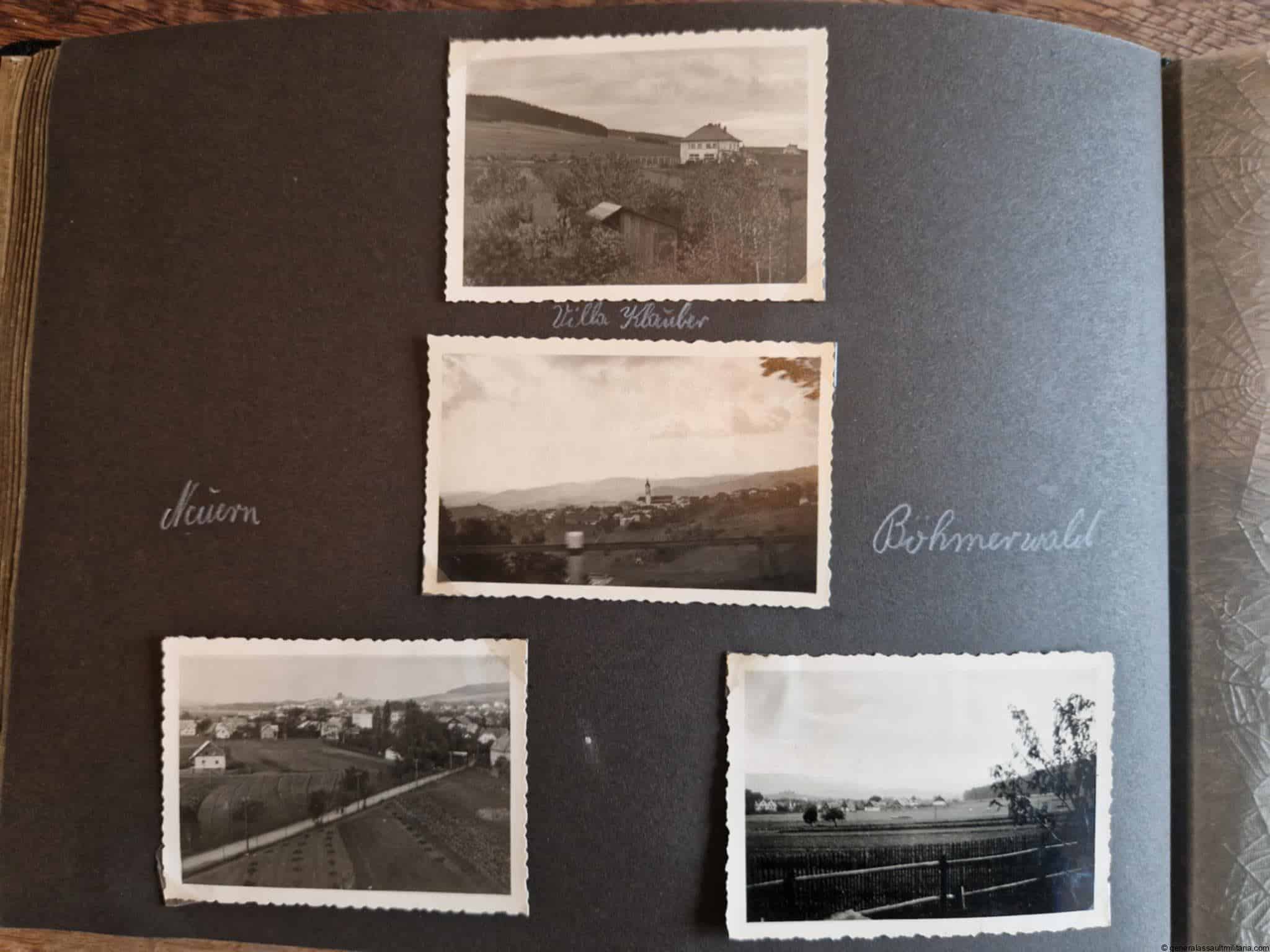 SS-Nachrichtensturmbann Album. Very interesting black SS album with many high quality photos from a member of the SS-Nachrichtensturmbann. Pictures range from 1936 till 1940. Shows many training photos, parades in Austria, Sudetenland(Prag) and Nürnberg. Some very sharp looking Music Corps photos and 2 portraits. A few pictures are missing here and there, about 5-6 in total. Total count is 179 pictures present.