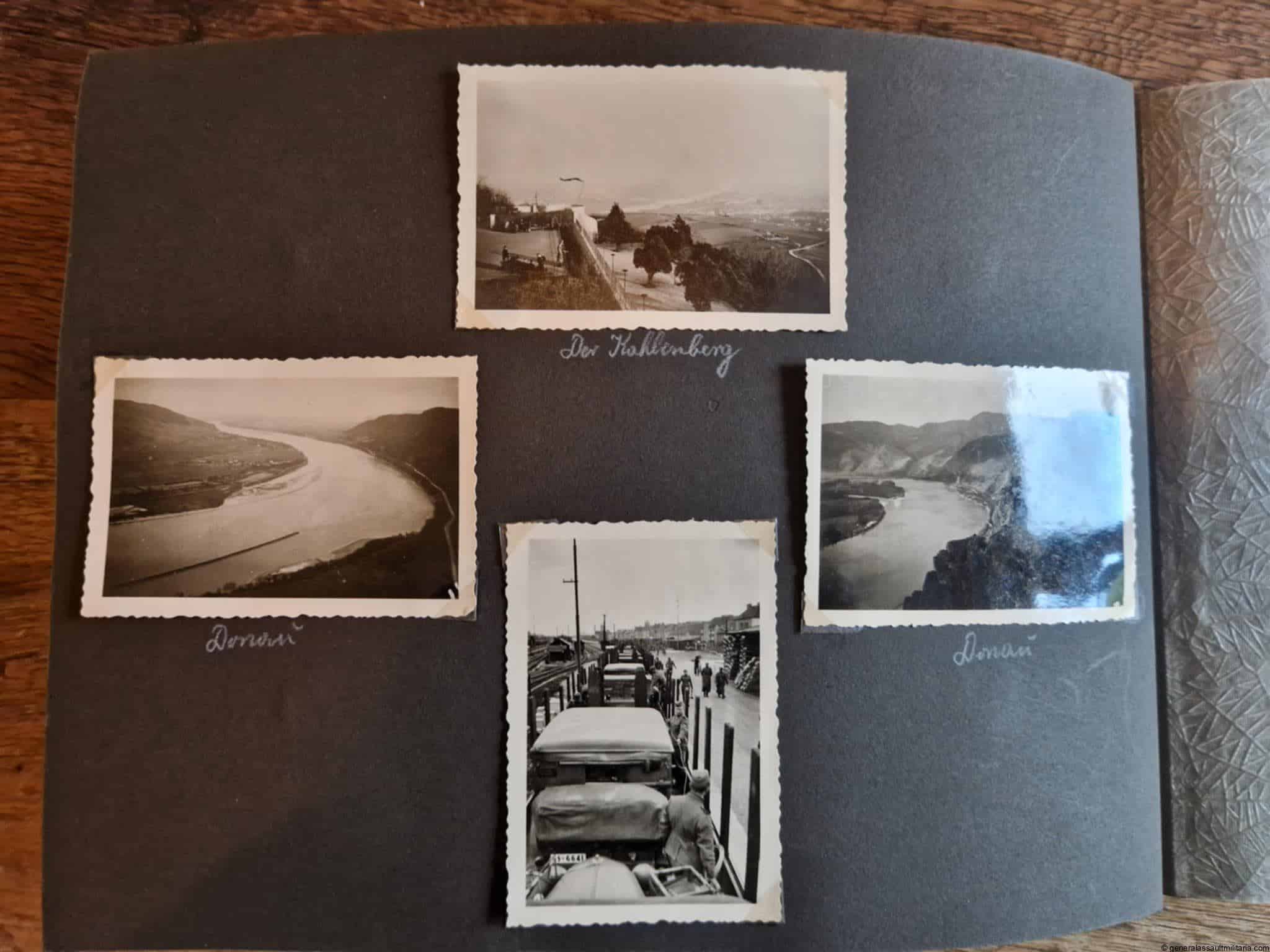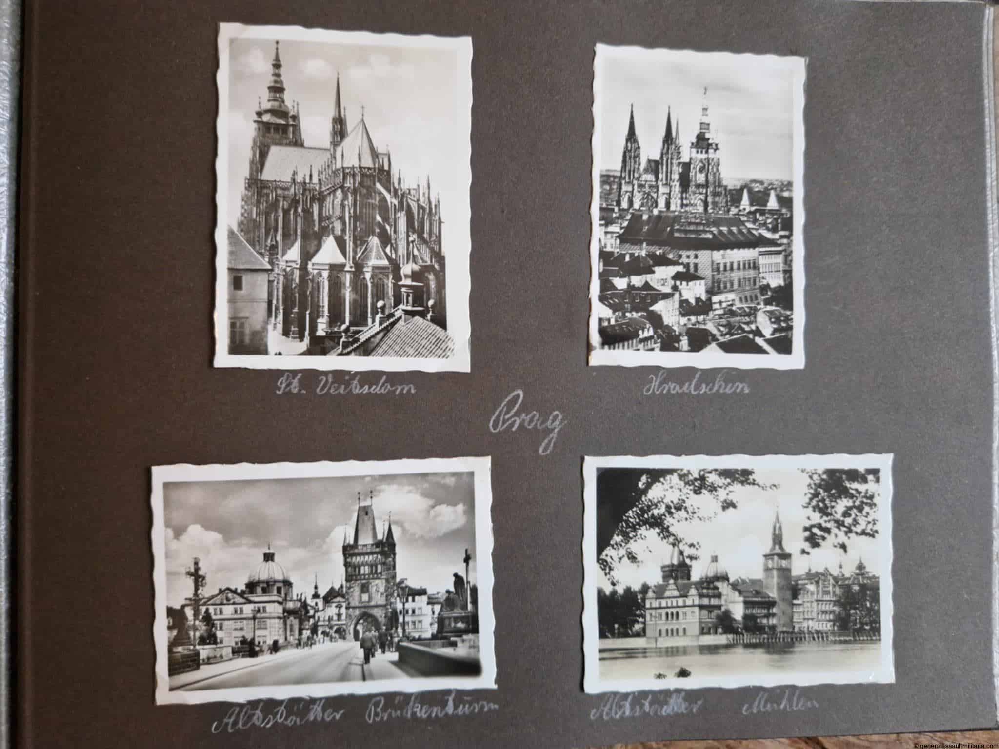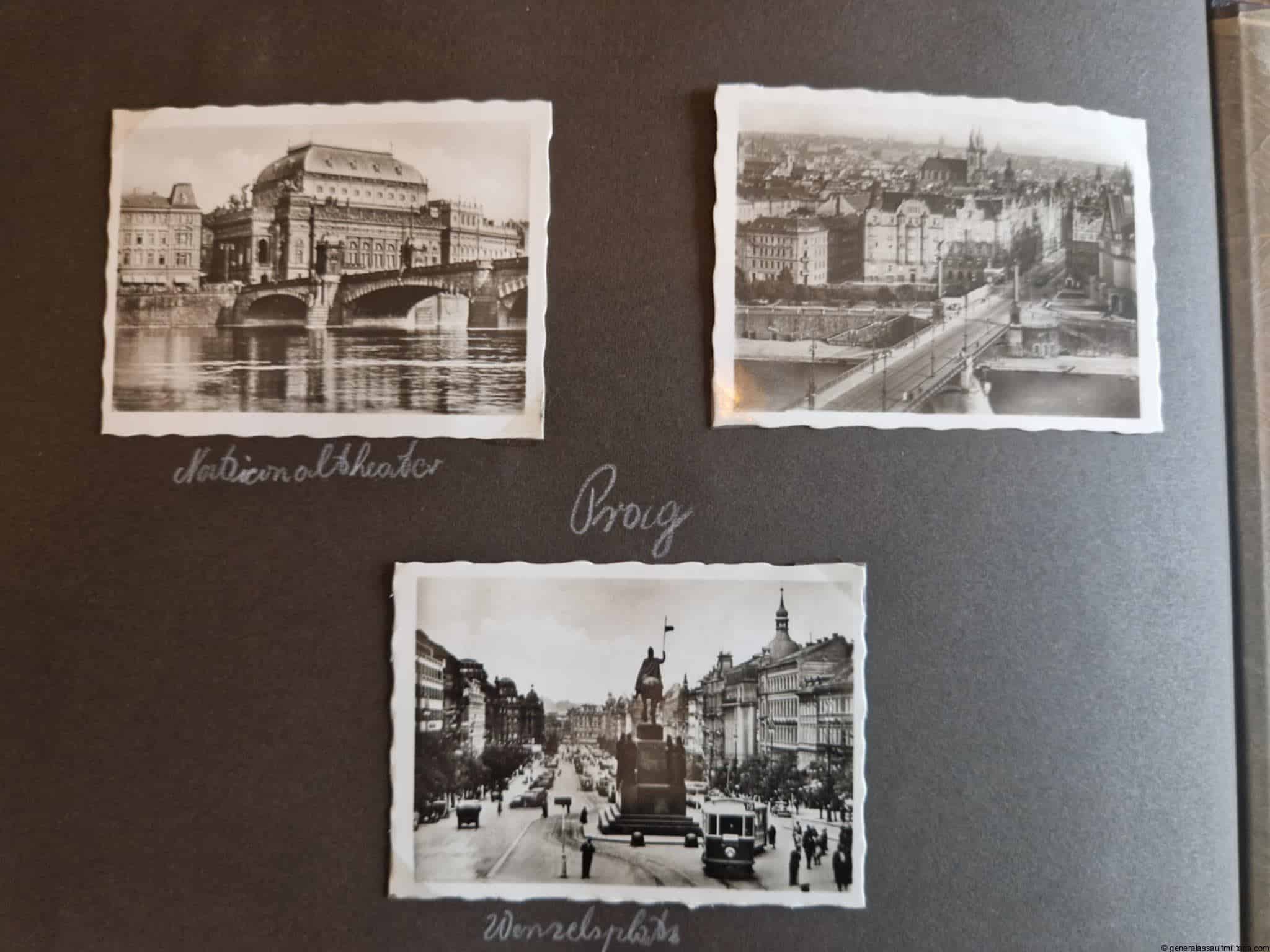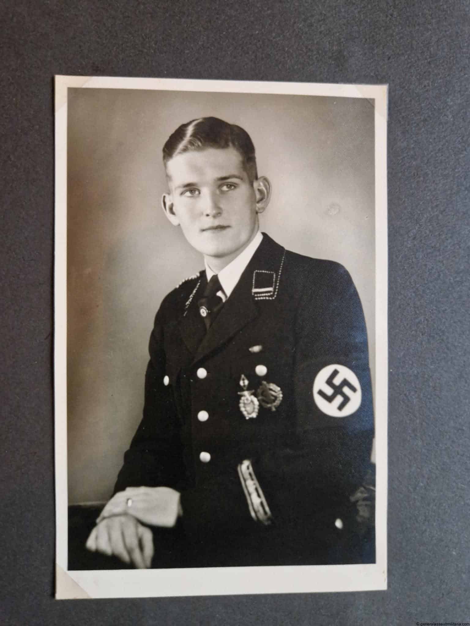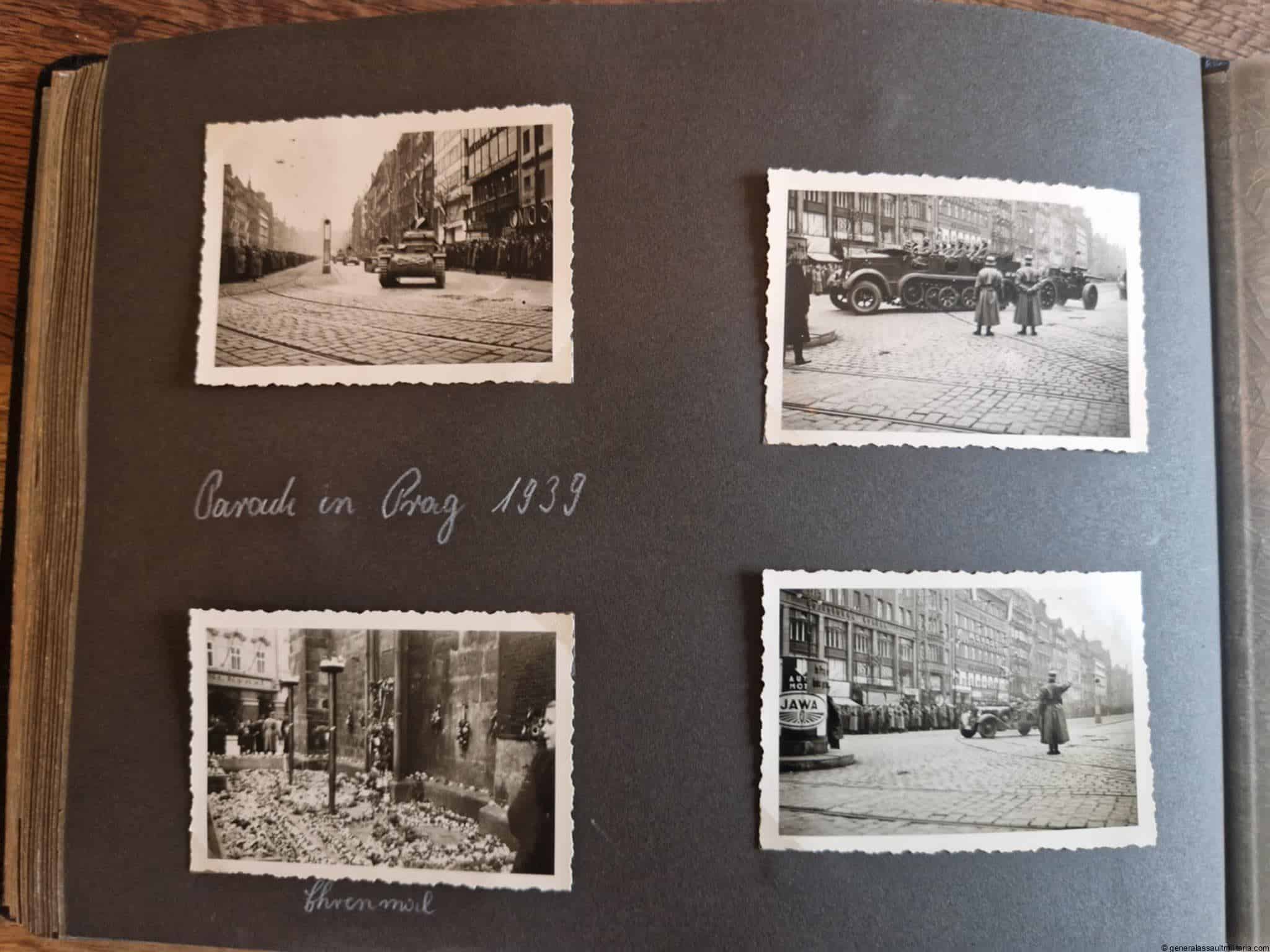 SS-Nachrichtensturmbann Album. Very interesting black SS album with many high quality photos from a member of the SS-Nachrichtensturmbann. Pictures range from 1936 till 1940. Shows many training photos, parades in Austria, Sudetenland(Prag) and Nürnberg. Some very sharp looking Music Corps photos and 2 portraits. A few pictures are missing here and there, about 5-6 in total. Total count is 179 pictures present.