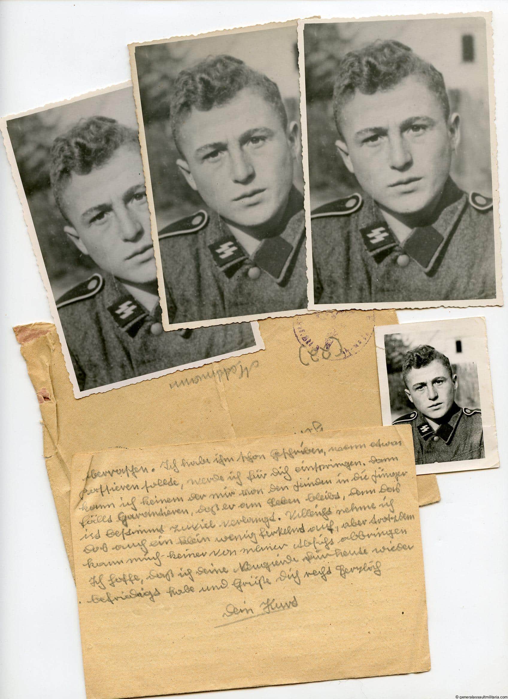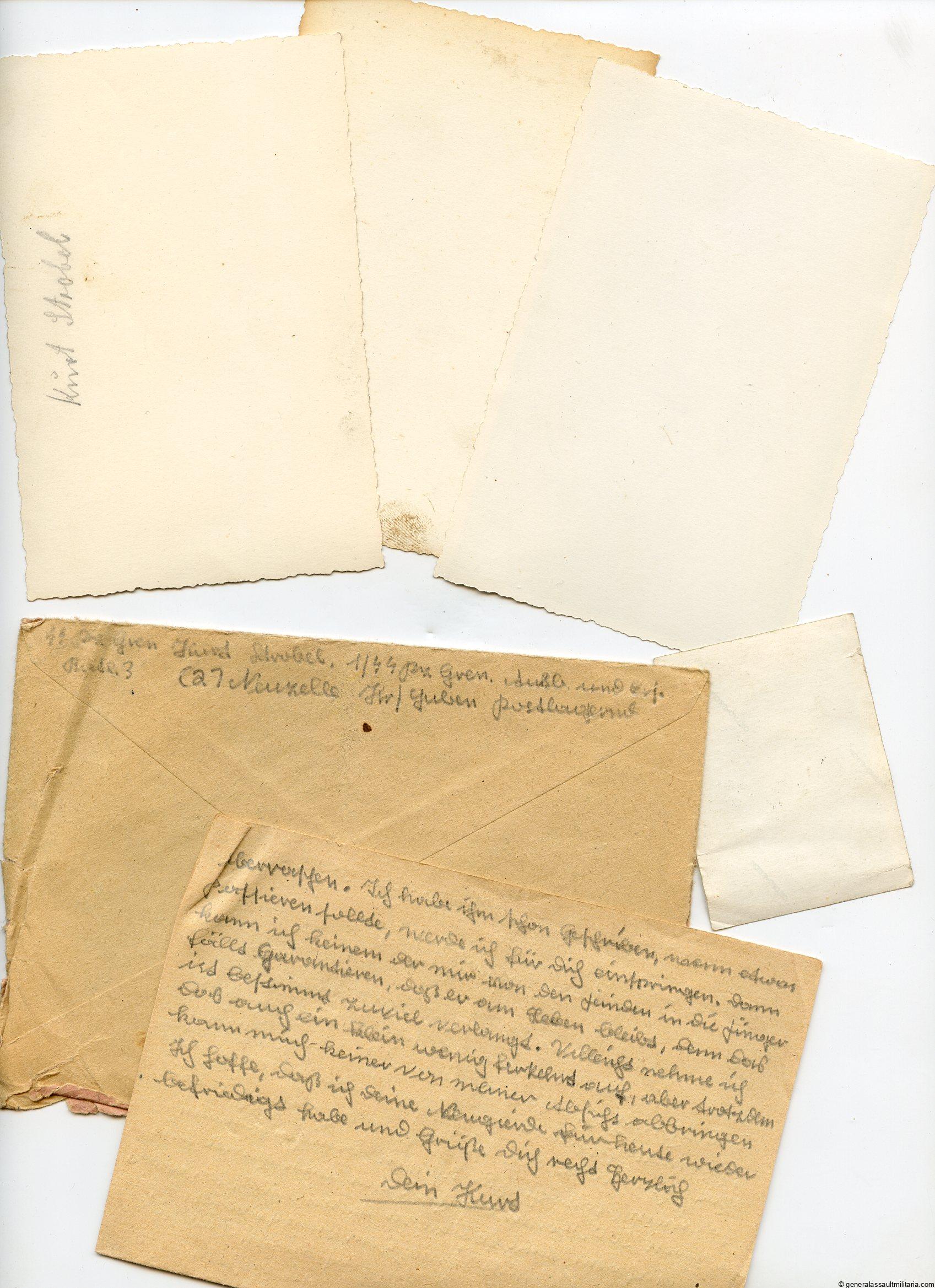 SS Pzgren. Kurt Strobel Letter and 3 portraits as found