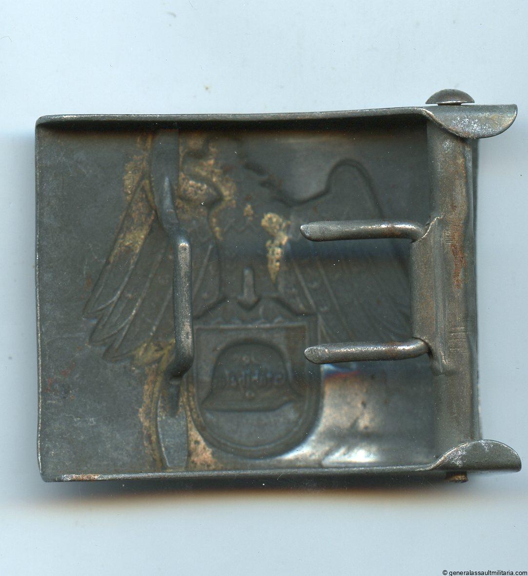 Stahlhelmbund buckle. Steel construction buckle with grey finish. Remains in excellent condition with some good wear and most of the finish remaining. Uncommon variant.